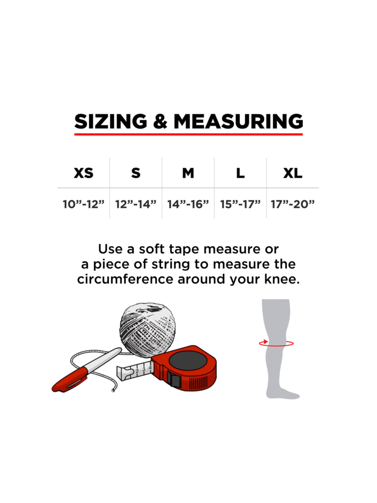 Sizing: (To ensure a perfect knee pad fit, measure circumference of extended knee and match to the sizes listed below)