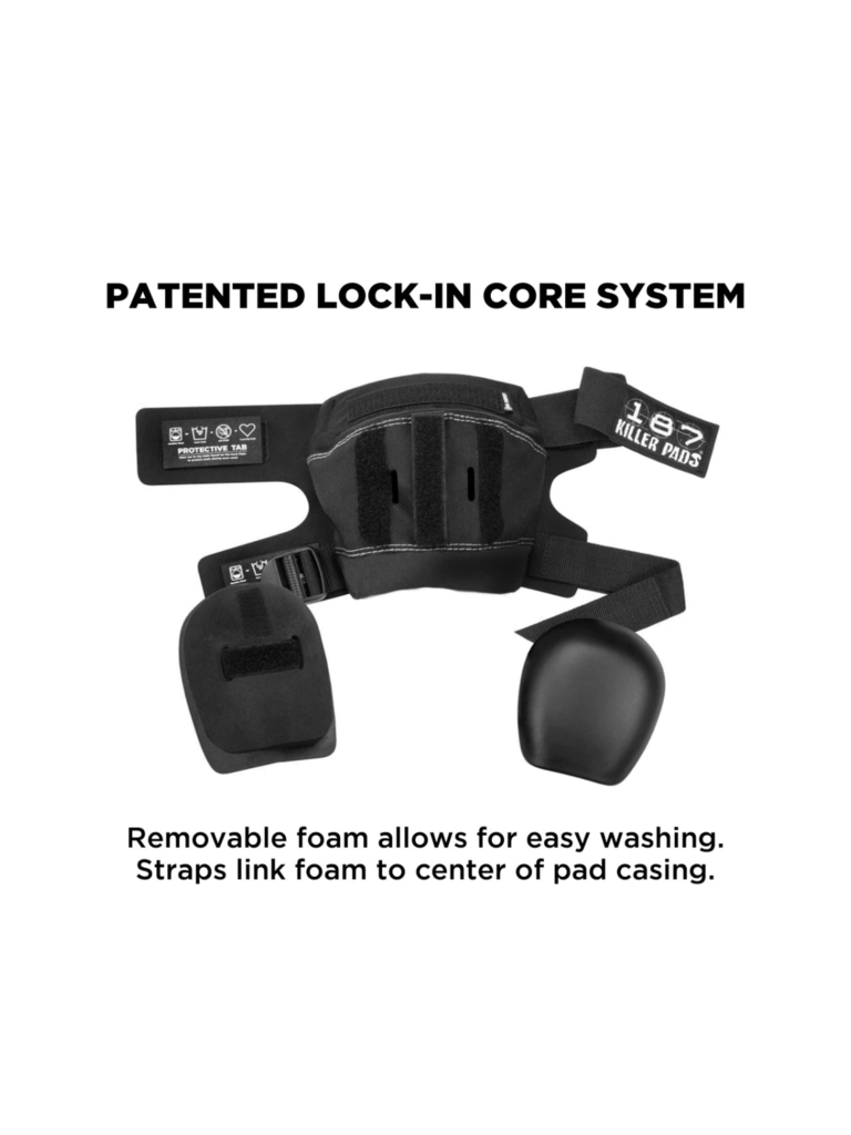- 187 Killer Pads® Lock-In™ Core System - Removable foam allows for easy washing - Interlocking straps link foam to center of pad casing