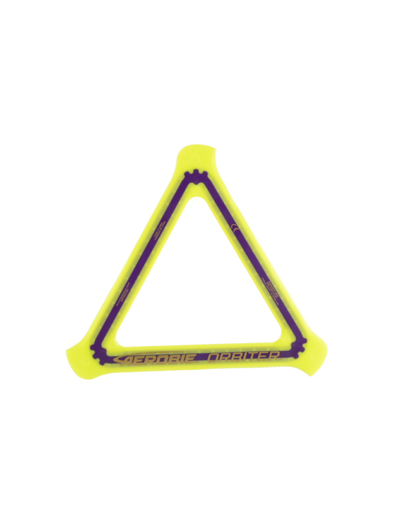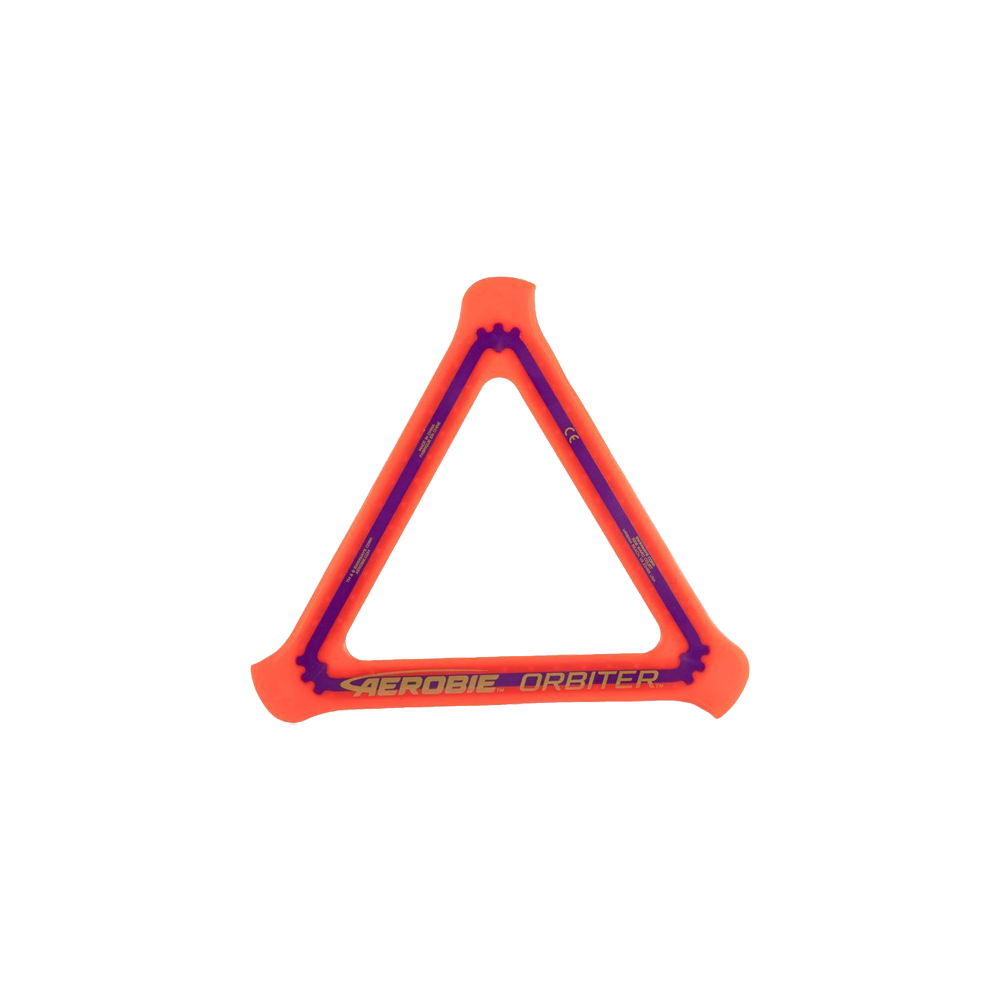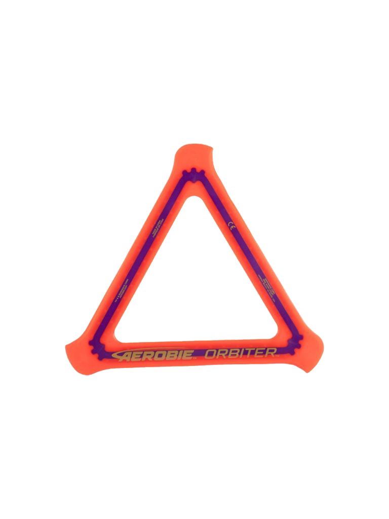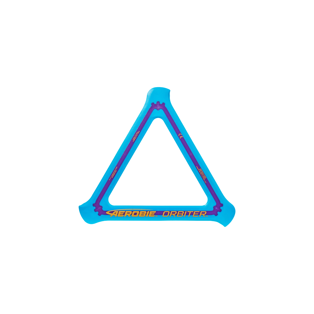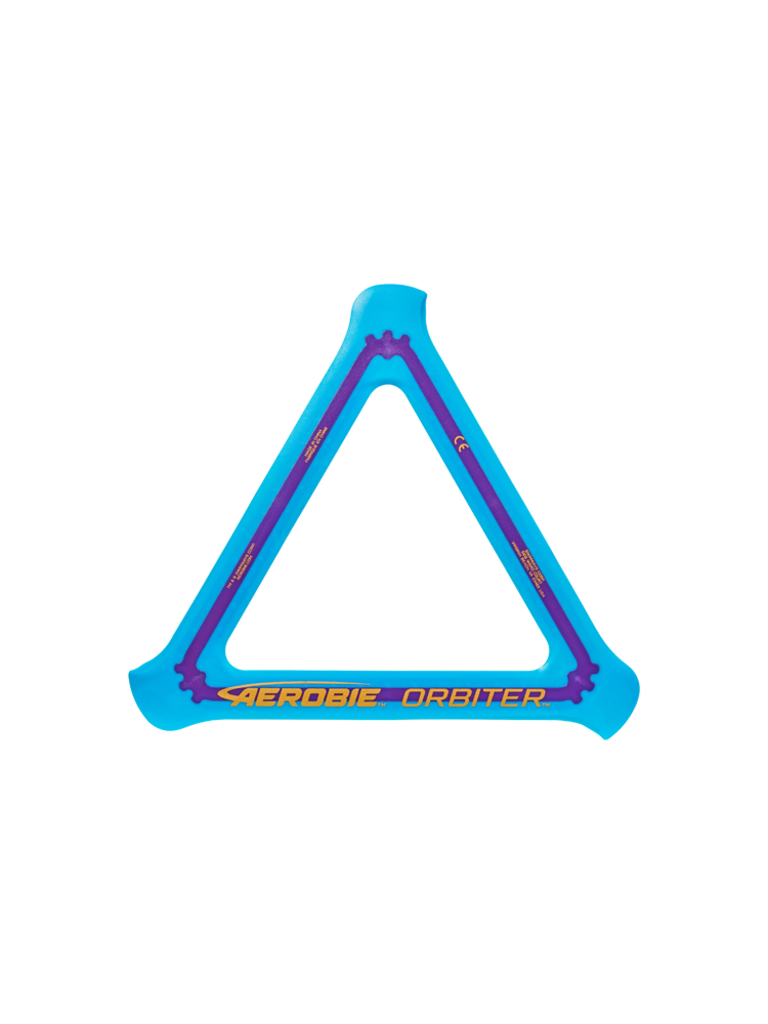 Create an accountThe Aerobie Orbiter Boomerang delivers out-of-this-world performance! Travelling up to 90 feet before it comes flying back, the Orbiter features soft edges and a triangular shape for improved grip when catching and throwing. The open center allows each player to personalize their throwing and catching style – grab the edge with your hand or use the center to catch it with your arm or foot. Create your signature moves with Aerobie flying discs!