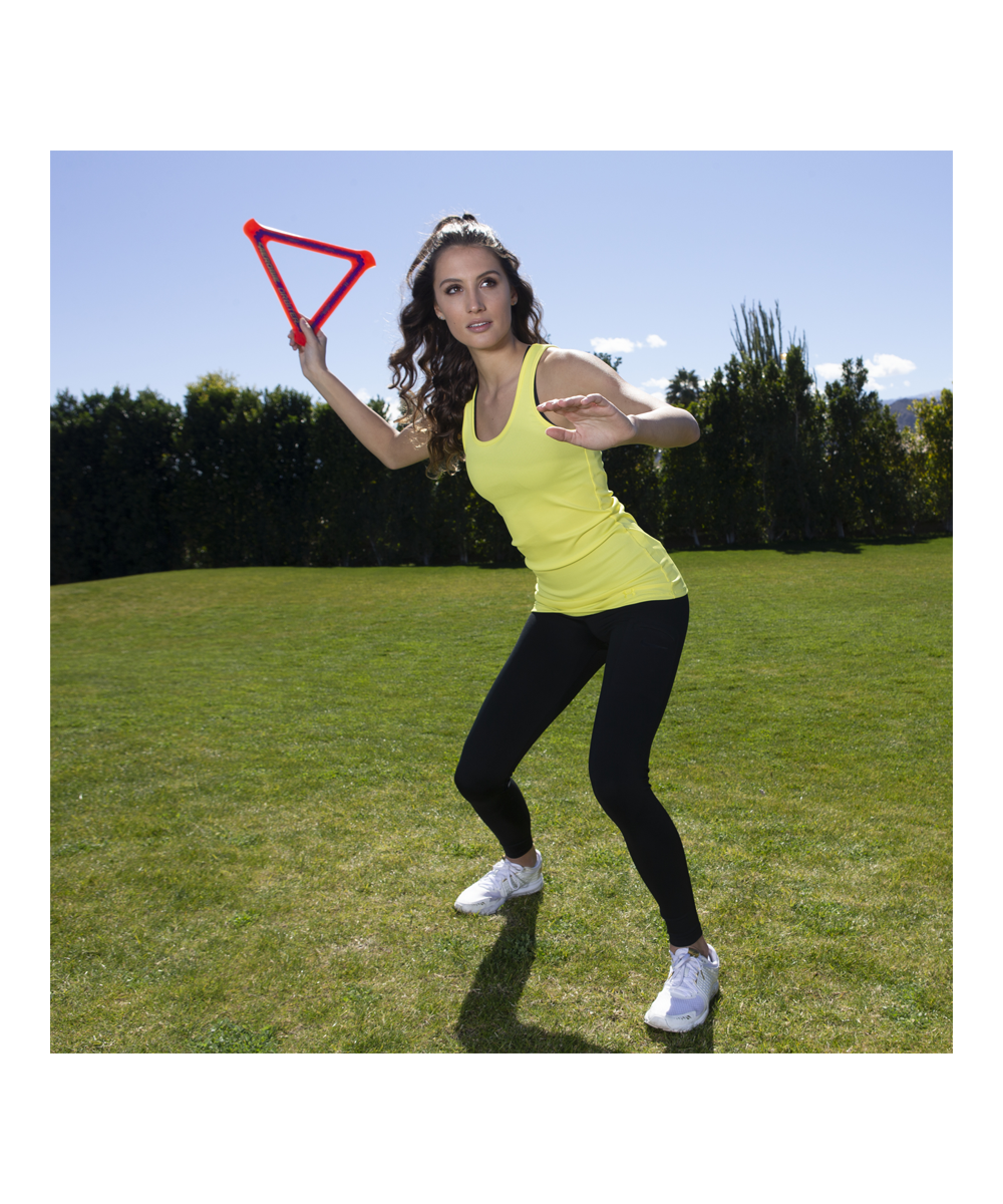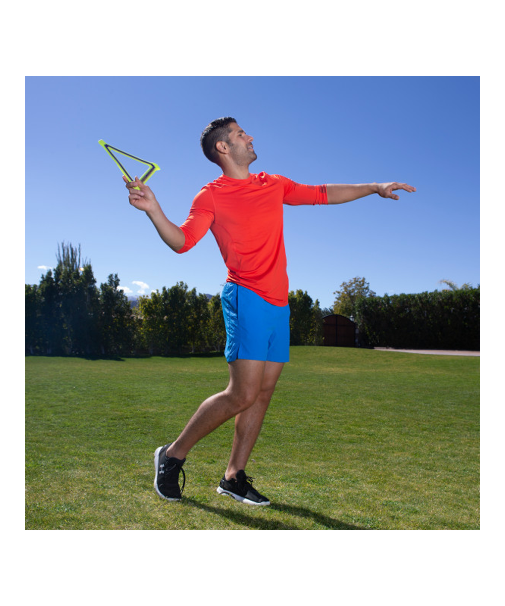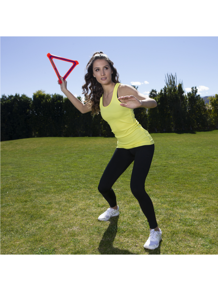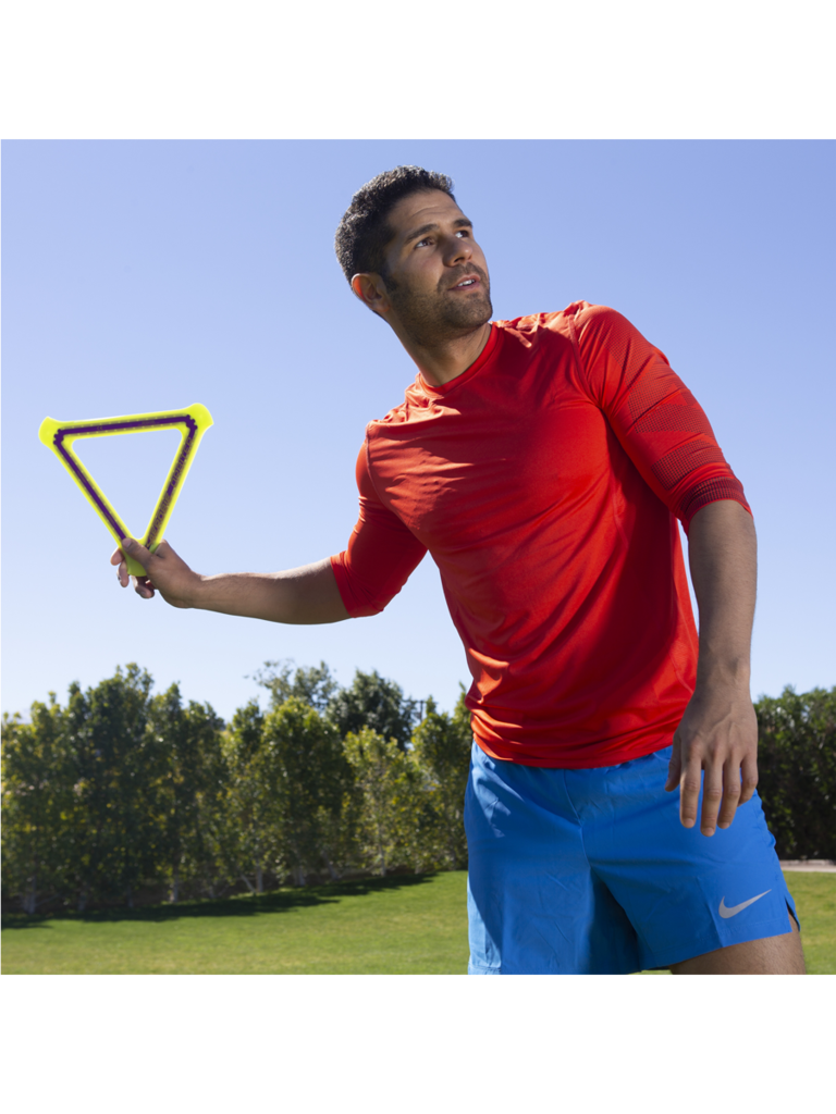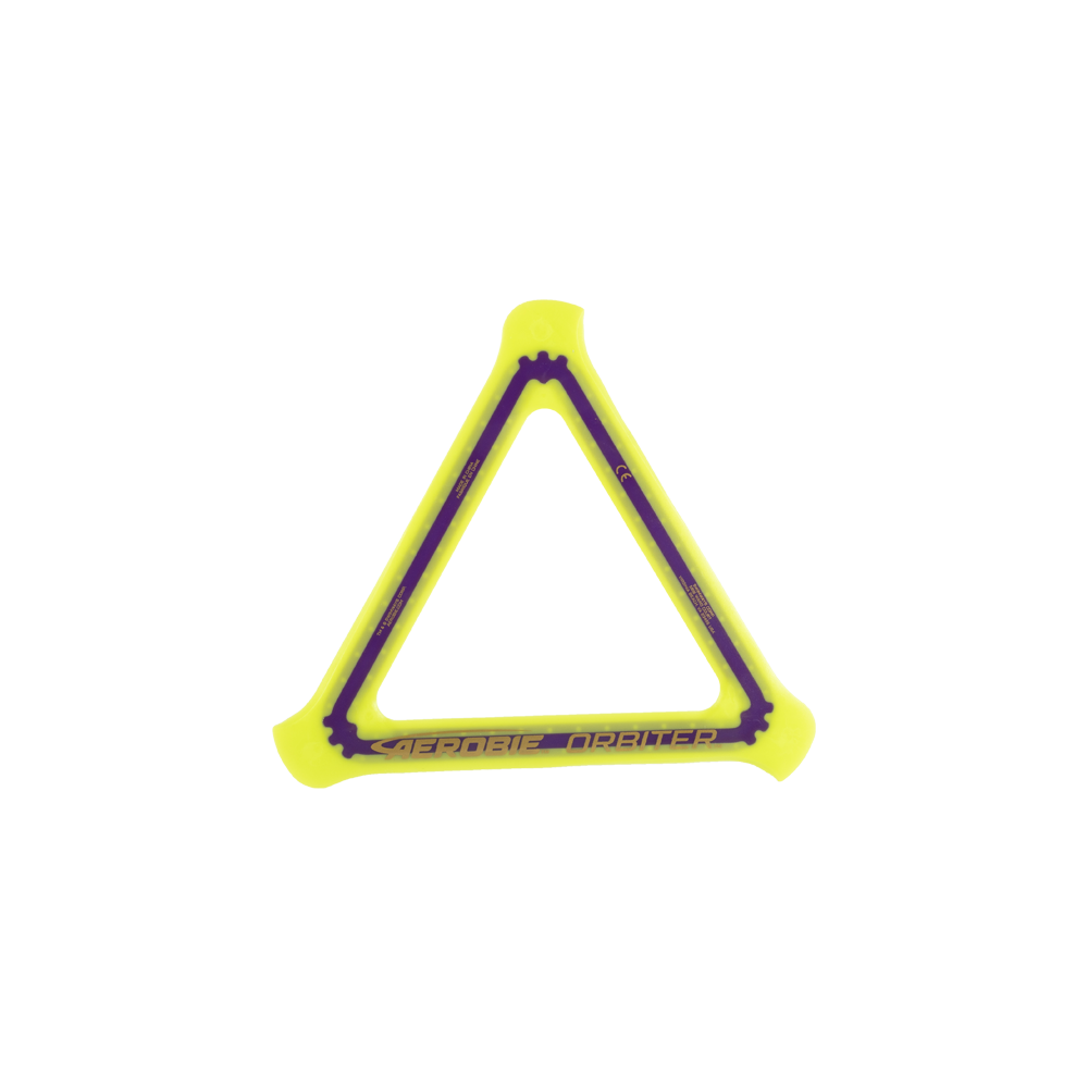 Create an accountThe Aerobie Orbiter Boomerang delivers out-of-this-world performance! Travelling up to 90 feet before it comes flying back, the Orbiter features soft edges and a triangular shape for improved grip when catching and throwing. The open center allows each player to personalize their throwing and catching style – grab the edge with your hand or use the center to catch it with your arm or foot. Create your signature moves with Aerobie flying discs!
