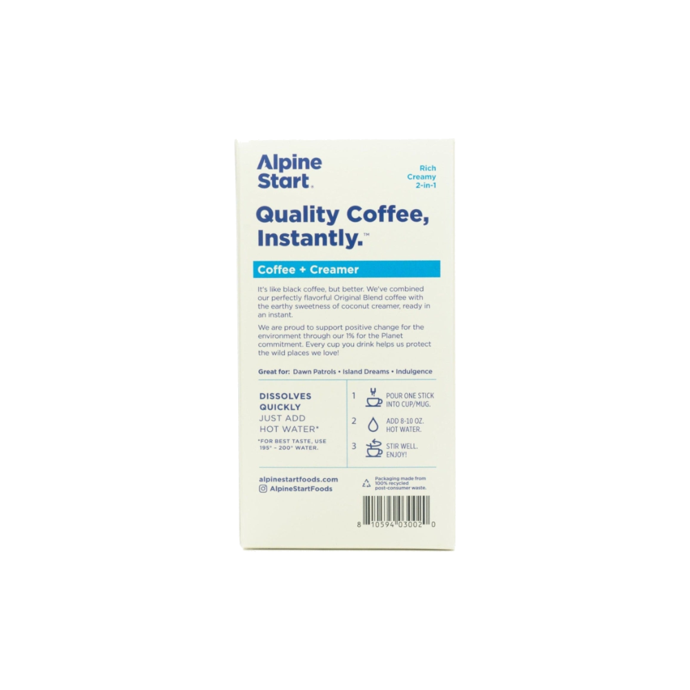 Create an accountAfter years of searching for a tasty, dairy-free instant coffee that you actually want to take backpacking or on-the-go, Alpine Start decided to make their own. They’ve brewed all the smooth, rich, and creamy flavor of the best 100% Colombian Arabica coffee with non-dairy creamer into an instant latte mix.