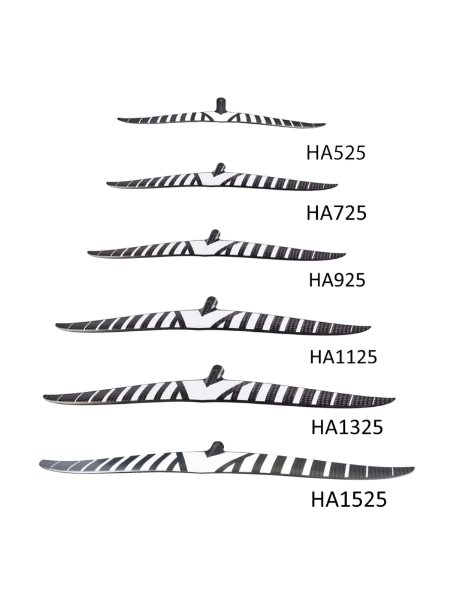 The HA1325 is truly amazing, the turn radius and pitch stability are sublime! Sleek inflected tips help prevent ventilation even if the tip breaches. Next level pump and glide if you want to double dip or link up micro swells, this wing just keeps on going!