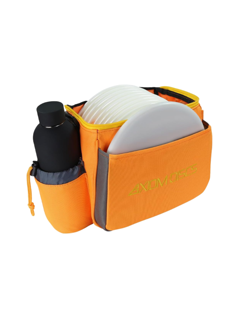 Create an accountThe Axiom Cell Bag is the entry-level disc bag built to carry your essentials out on the course. The Axiom Cell bag can hold 6 to 10 discs in its main compartment, and 2 more in the putter sleeve, and your personal items in an inner mesh pocket. The Axiom Cell bags have been upgraded to more abrasion resistant and water-resistant material.