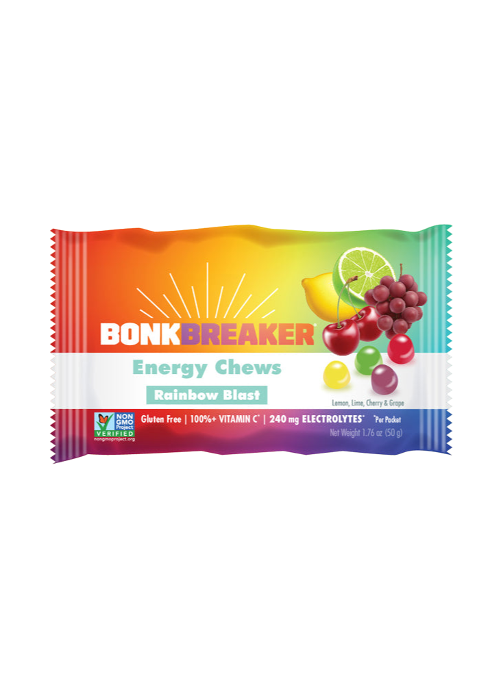 Create an accountThese delicious and easily digestible energy gummies provide the perfect blend of fast-acting carbs and electrolytes to give you the energy you need to fuel any journey. Packed with vital electrolytes (Sodium and Potassium), and Vitamin C, these vegan chews are a well-rounded choice for athletes who need energy fast. Plus, the bite-sized portions make them easy to eat as on-the-go energy. Whether you're seeking energy chews for running, cycling, or a triathlon, these energy gummies are a perfect fit to help get you through. We recommend fueling every 30 to 45 minutes during exercise, as pre-workout fuel or any time you need a quick boost of energy. Give yourself the edge you need to take your performance to the next level with Bonk Breaker Energy Chews!