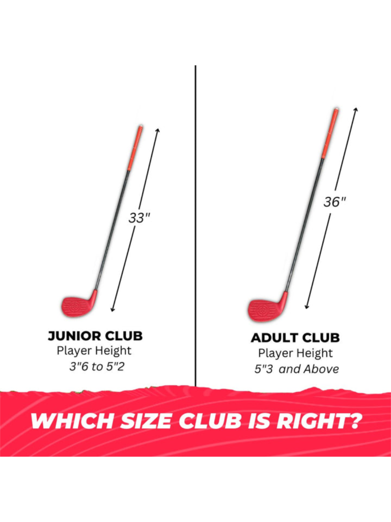 - Oversize club head for both clubs is 3.5 inch by 5 inch.