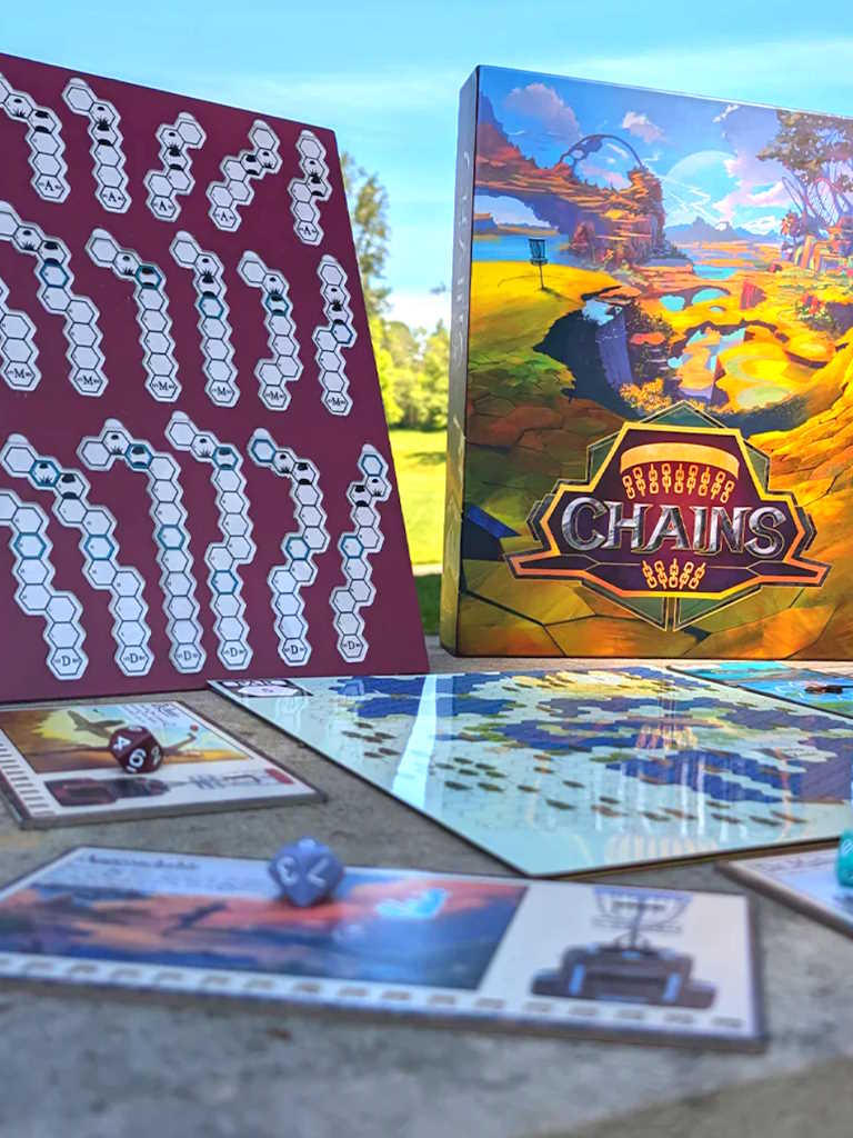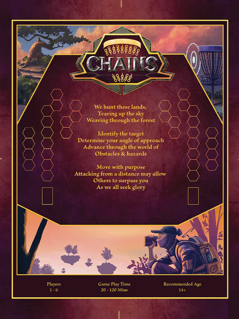 Visit https://dgbg.ca/ for more information on the Chains Disc Golf Board Game.