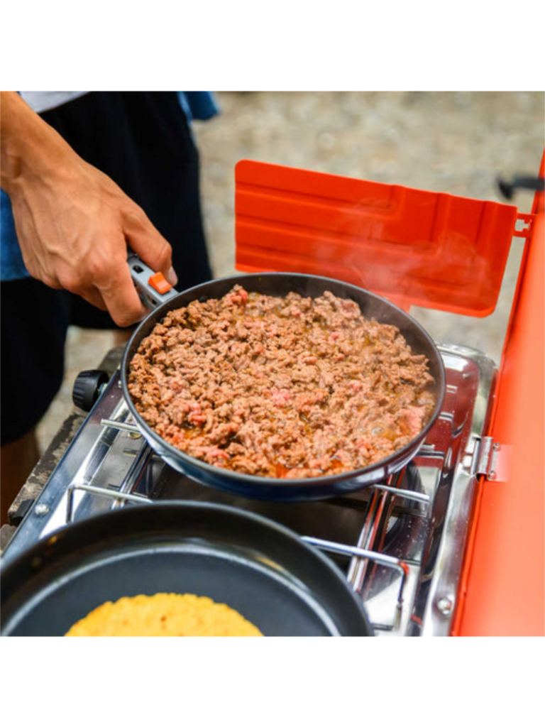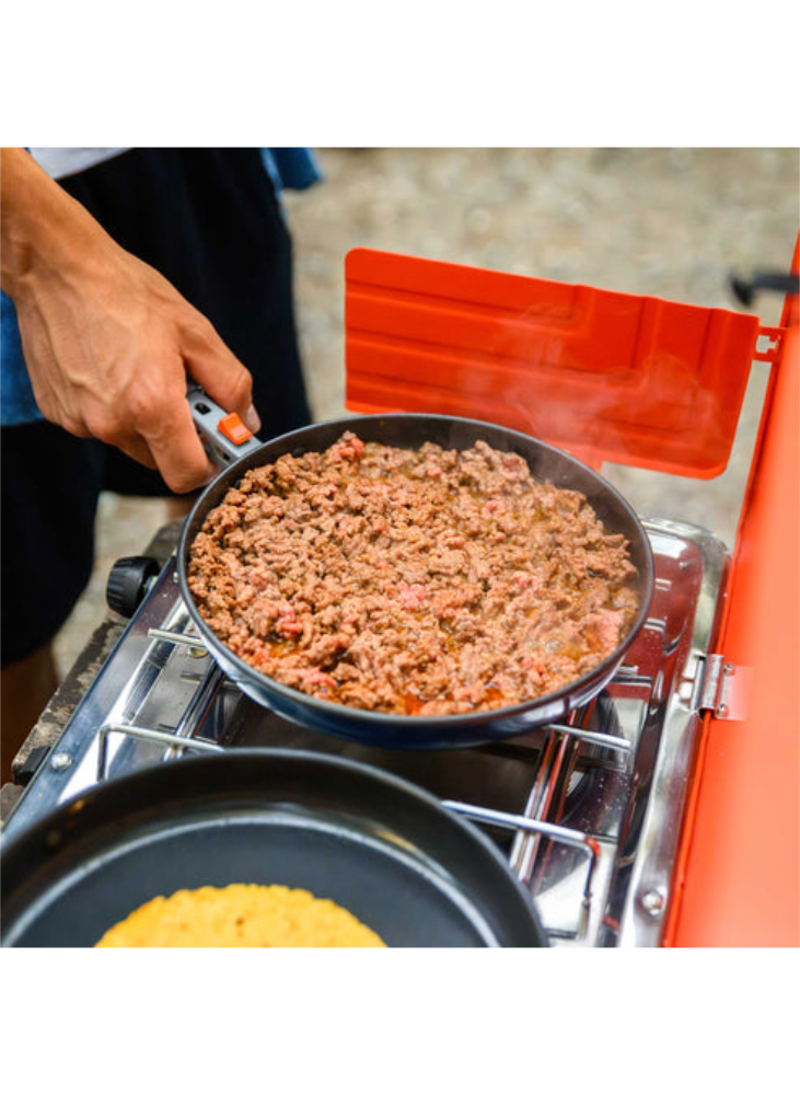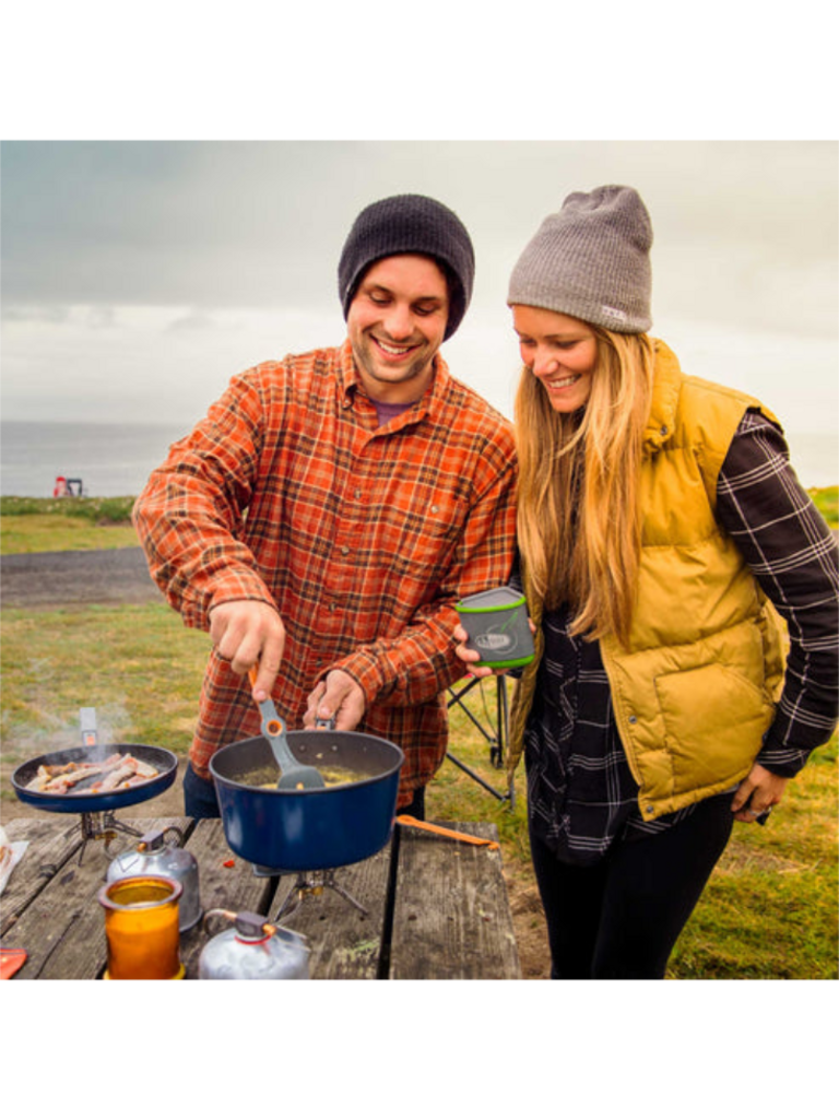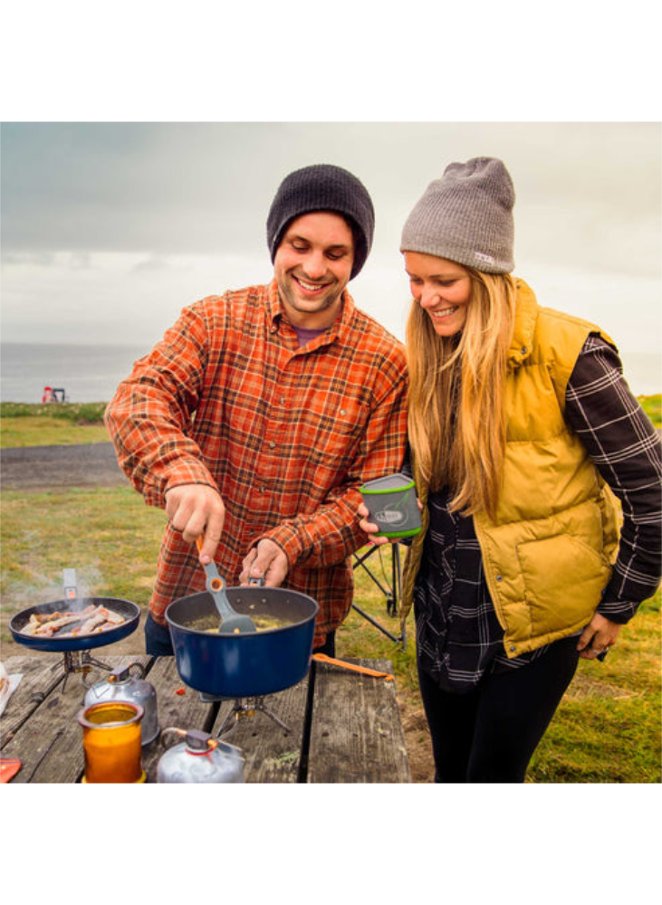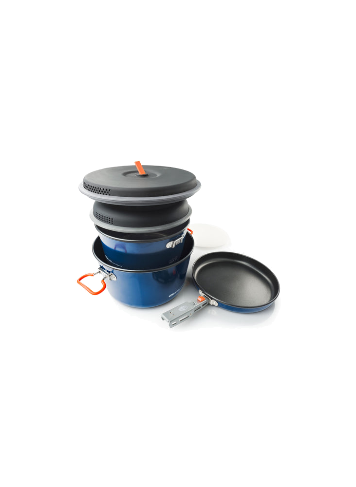 Create an accountThe pot and lid combo are perfect for stovetop use. Every set includes a 2 pots, a frypan, 2 nylon strainer lids, a dished cutting board for a variety of prep duties, a folding pot handle, and a welded stuff sack to keep everything organized and doubles as a sink for washing. Features a crush-proof, heat-resistant strainer lid.