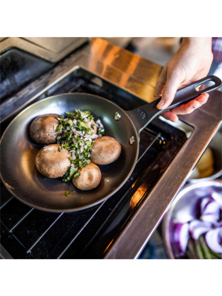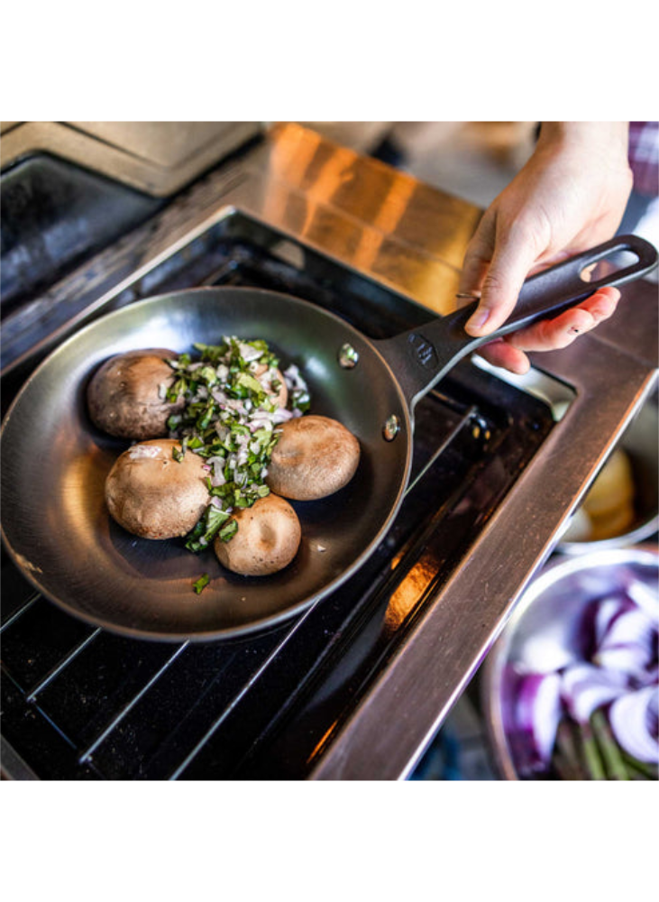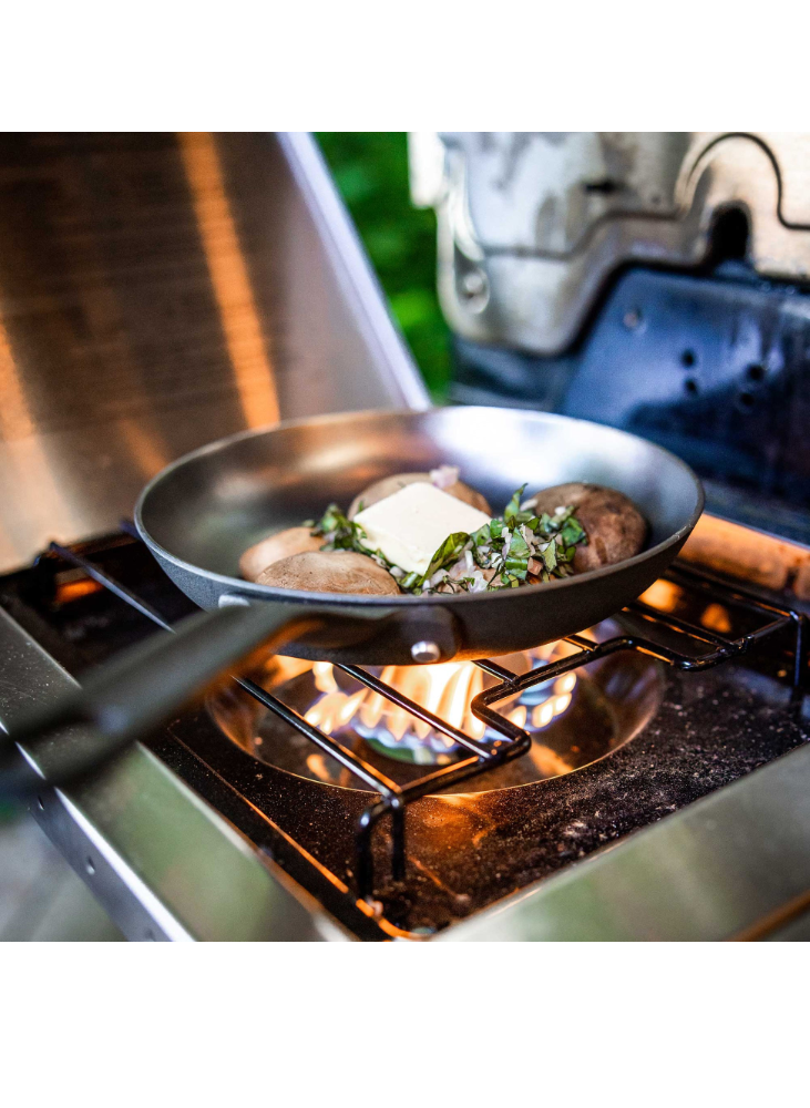 Gourmet, lightweight cast-iron frypan is 20-40% lighter then conventional cast iron fry pans, while offering uncompromising cooking performance. Nitrided surface treatment helps to prevent corrosion. Polished interior and exterior bottoms perform on all cooking surfaces, from a campfire to an induction stoves.