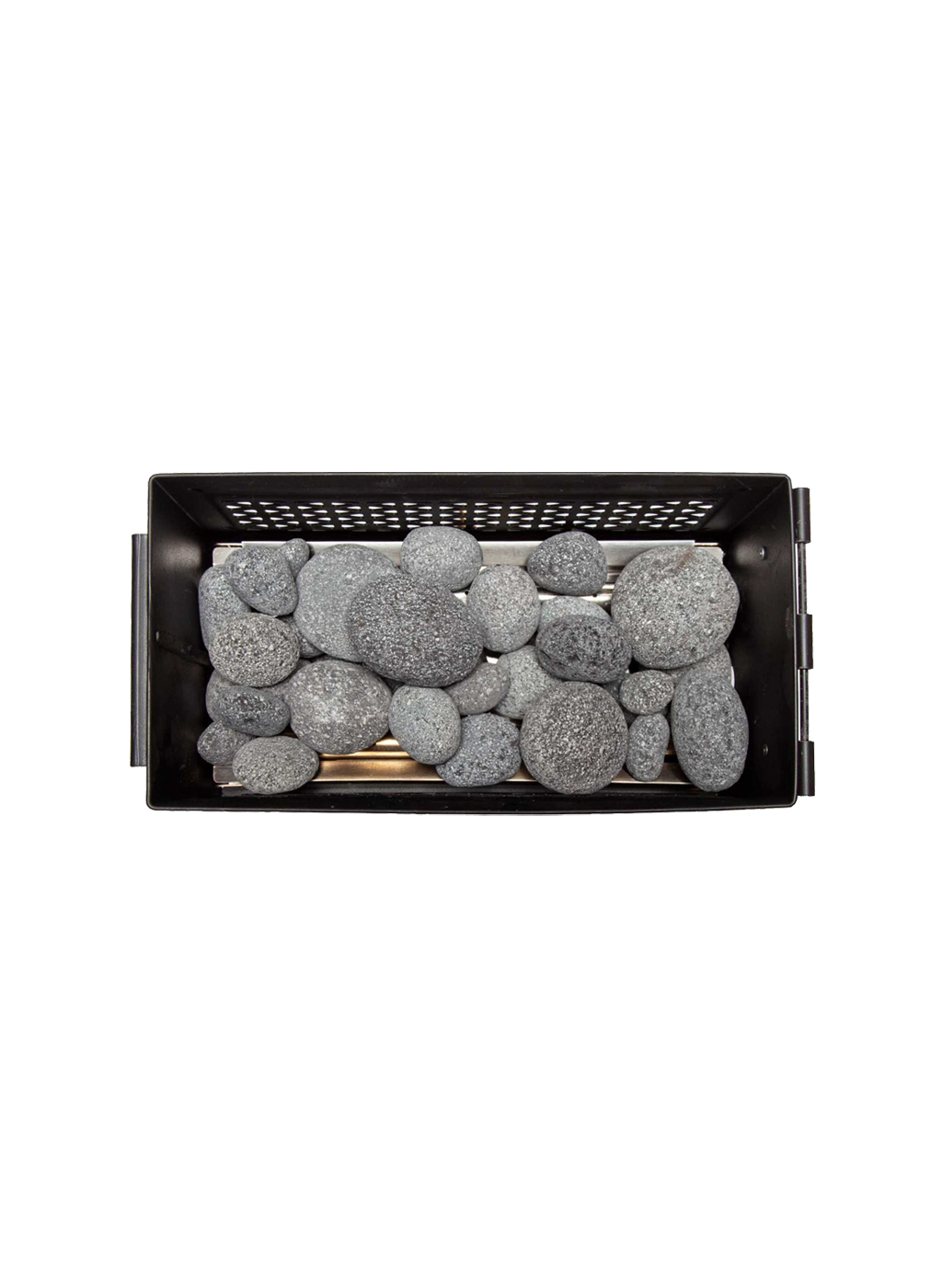 WARNING: Volcanic rock has the ability to trap moisture and fracture or pop upon rapid heating. When using lava rock apply heat gradually and at low levels to reduce the release of any moisture or internal steam buildup.