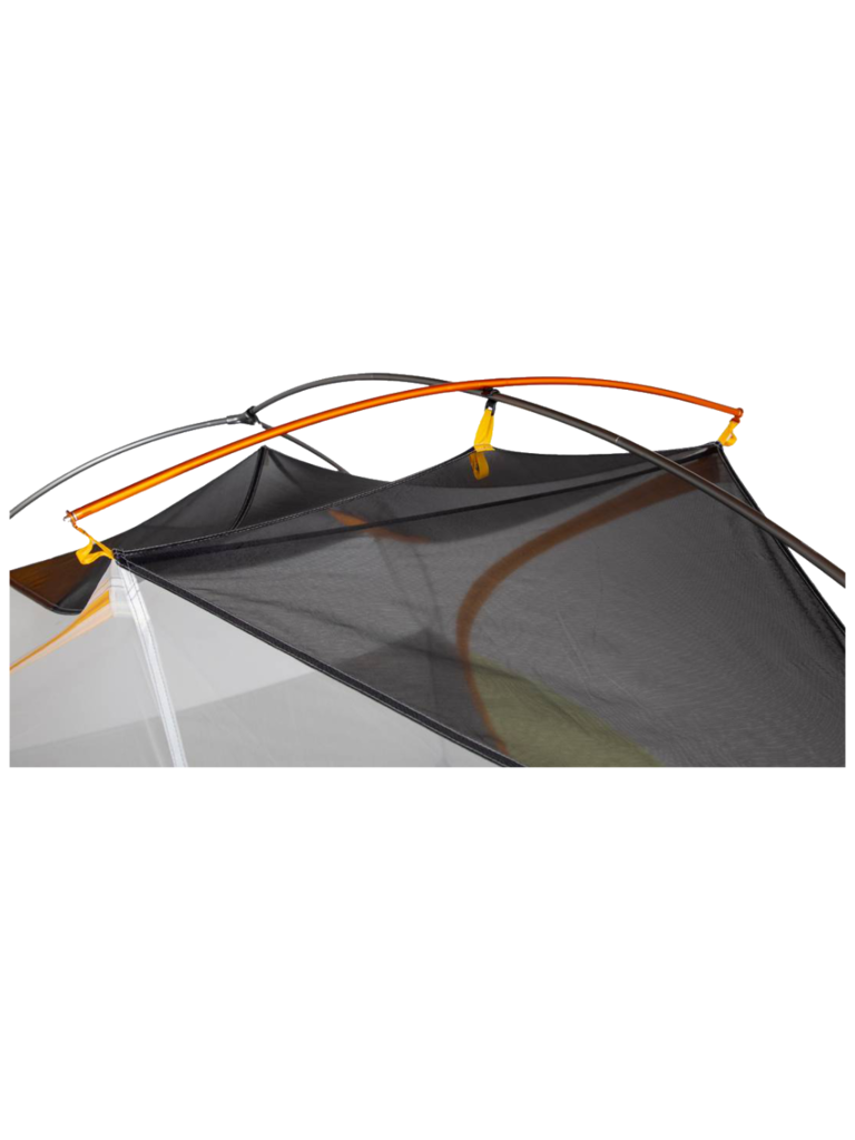 - Hubbed, pre-bent aluminum poles with a high-arching main pole to significantly increase volume at the head and foot ends.