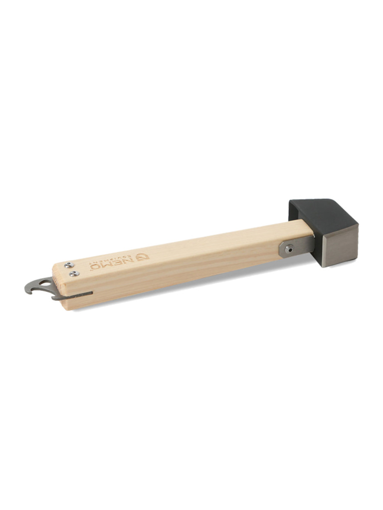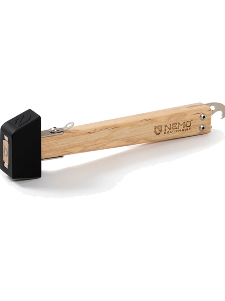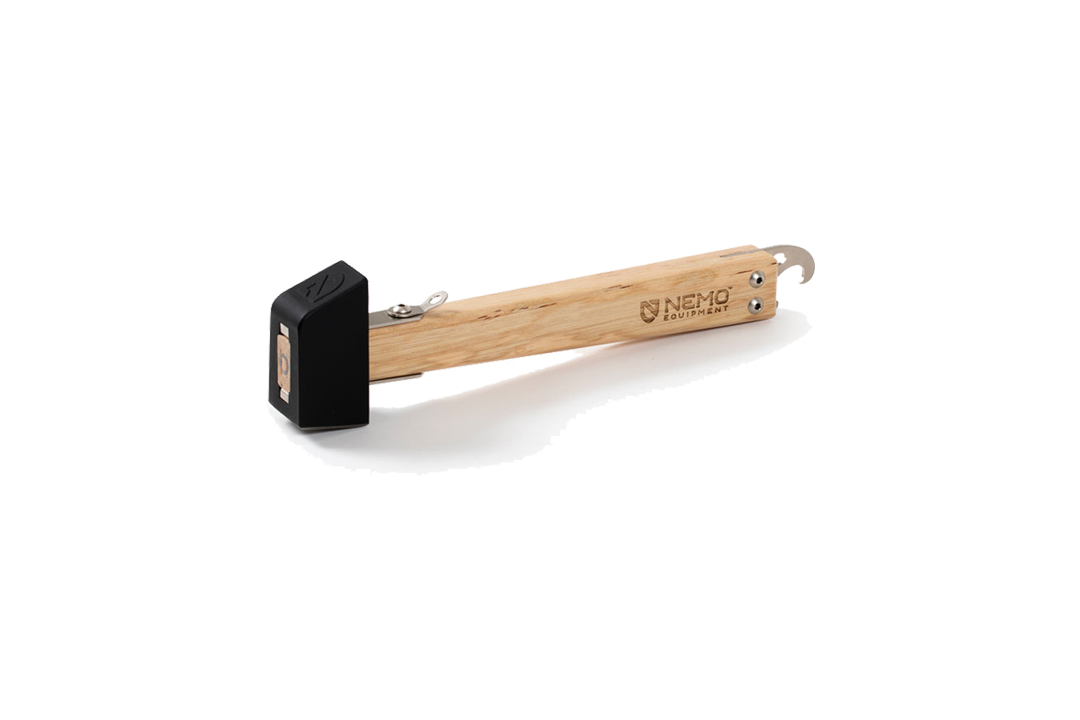 The Meldr brings the craftsmanship from NEMO's woodshop to the tent stake hammer, with this striking, heirloom-quality camp tool. The solid cast stainless steel head is anchored with custom hardware to the artfully tapered, perfectly balanced hickory shaft. A new ergonomic design and raked striking face makes driving stakes easier. The hammer's aesthetic is completed with a red-tailed hawk-shaped bottle opener, which is also designed for pulling stakes from the ground.