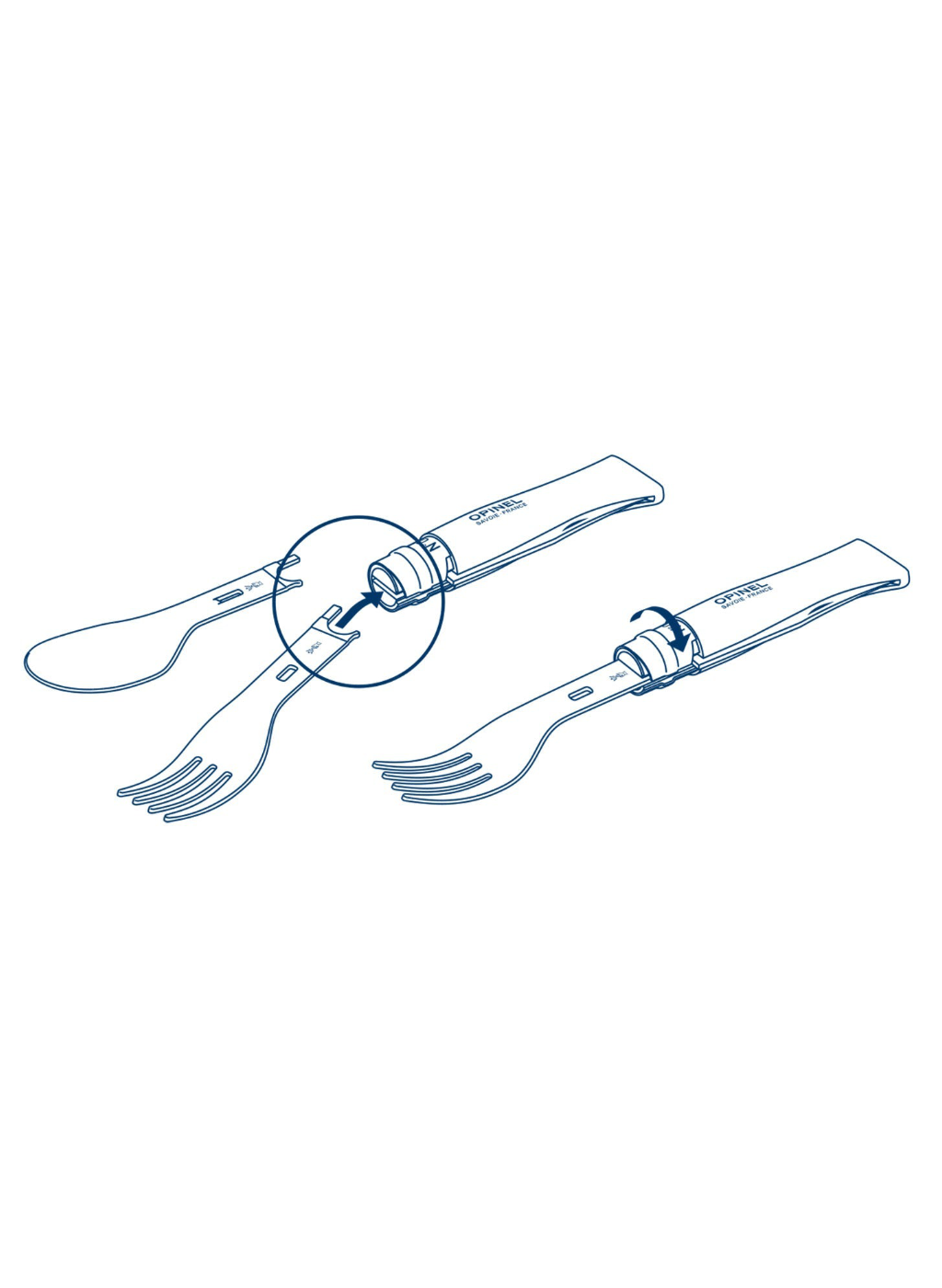 *Fork and spoon inserts compatible with all wooden handled No.08 folding knives equipped with the Virobloc® safety ring, circa 2000.