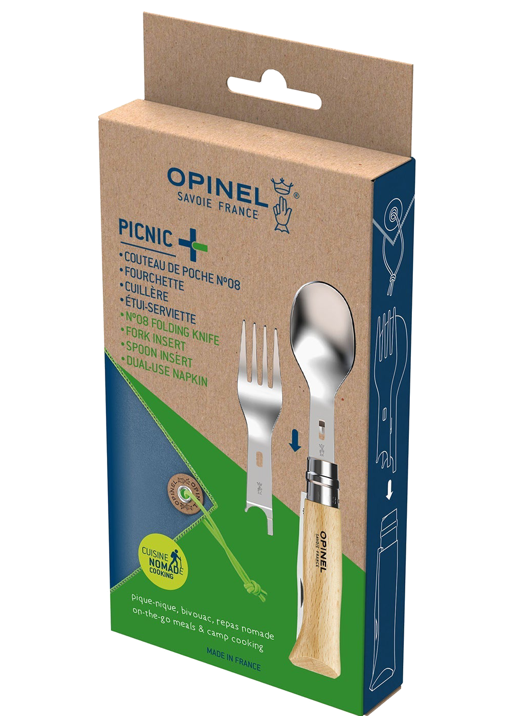 Create an accountThe Picnic+ cutlery inserts are smart and durable accessories for on the go meals and camp cooking. Part of our Nomad Cooking Collection, you can ditch the disposable cutlery and replace it with our Picnic+ set. Perfect for hiking, weekend picnics, or just everyday lunches, the Picnic+ set utilizes the Virobloc® safety ring on our No.08 folding knife to hold the fork and/or spoon insert in place.
