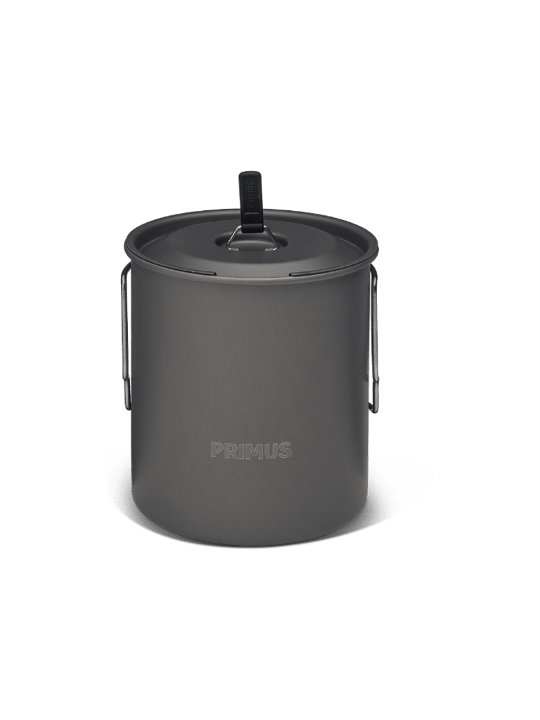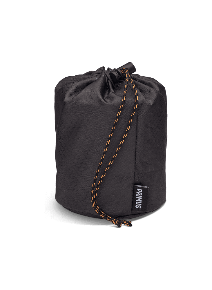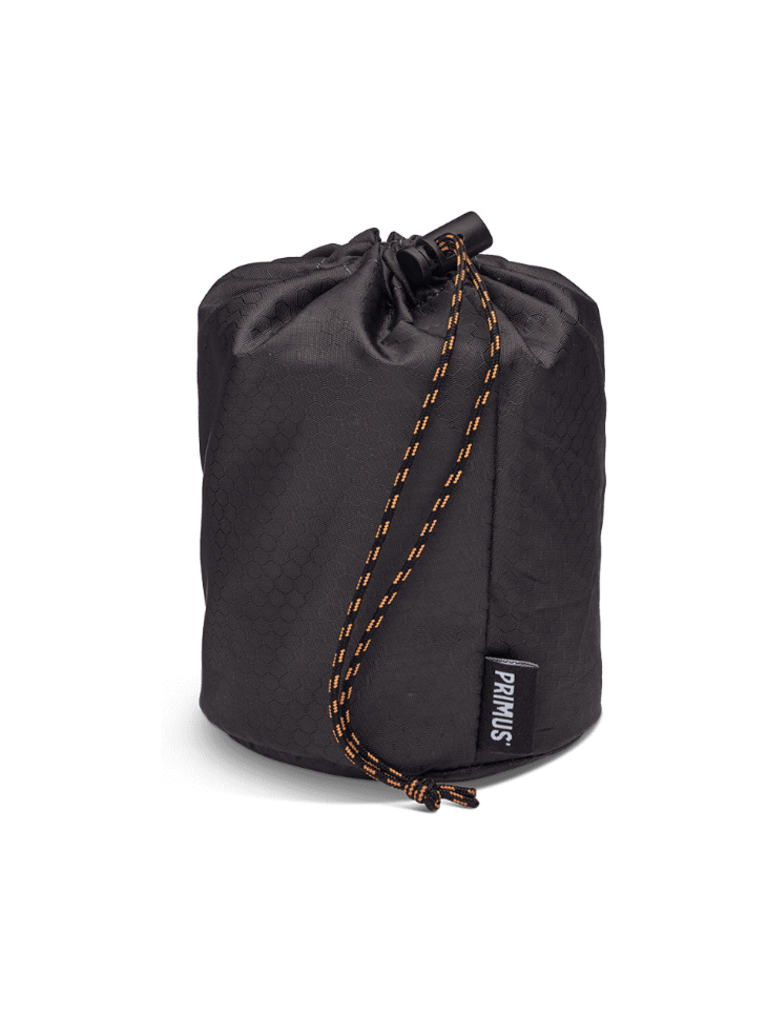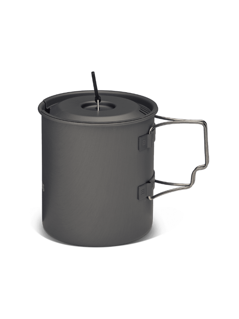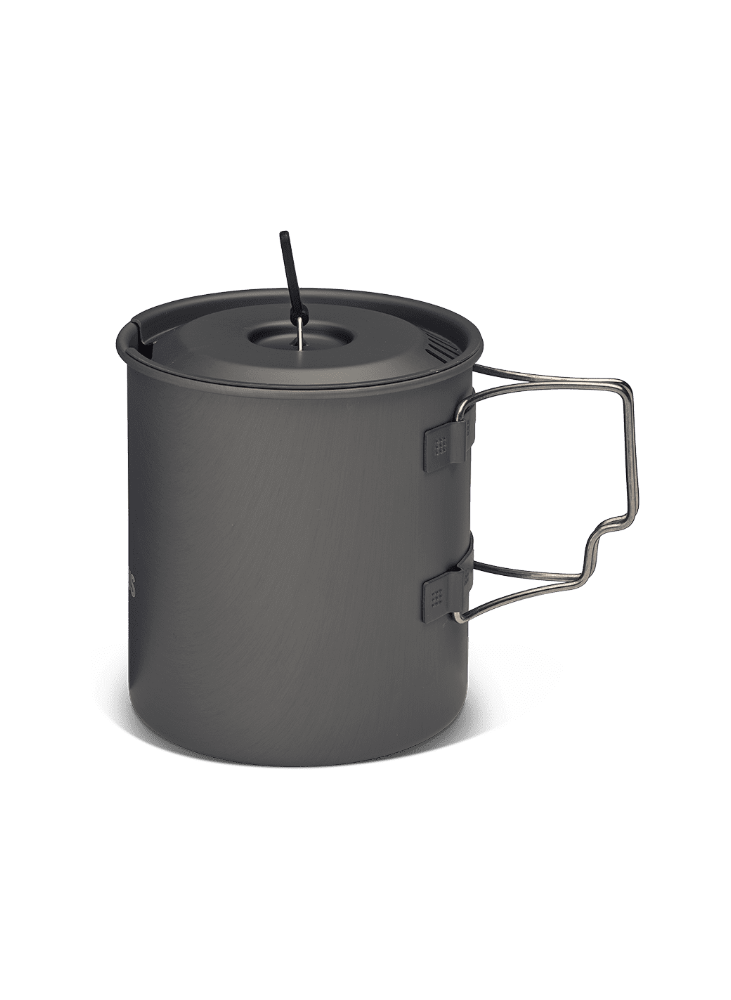 Made from hard-anodized aluminium that combines low weight with excellent heat conductivity. The titanium handles stay cool and fold in for compact packing. The minimalist design allows both a stove and a 100 g gas canister to fit inside the pot.