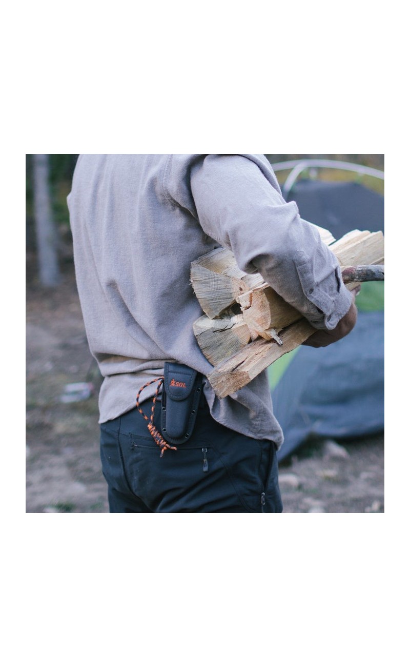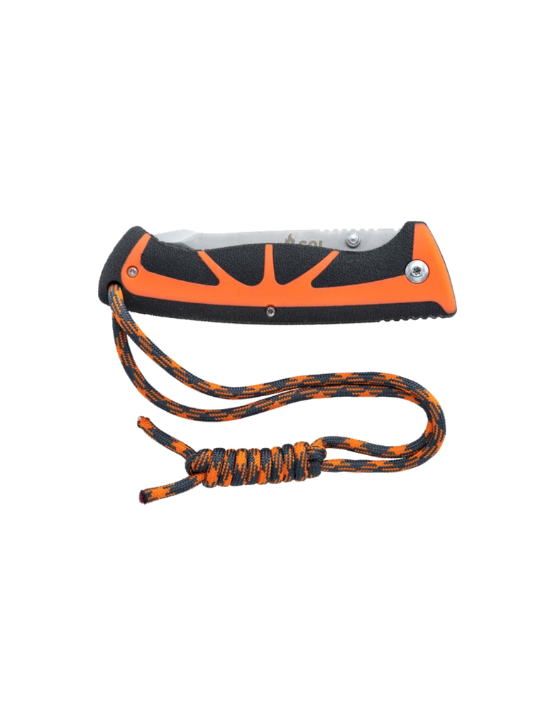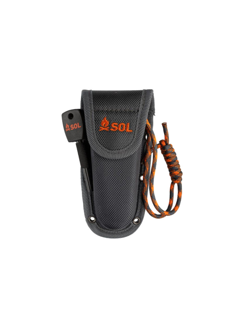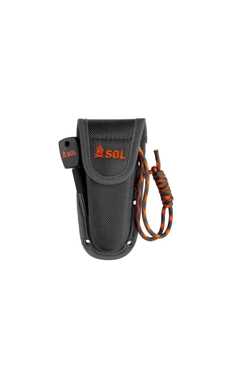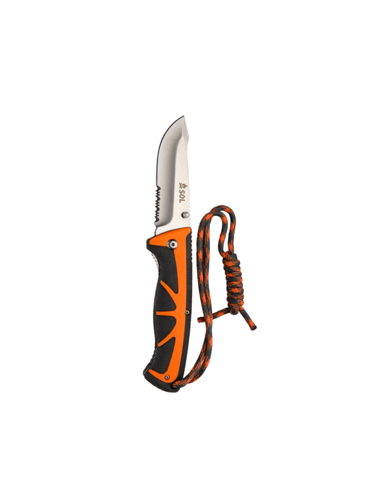 Create an accountThe Stoke Folding Knife features a high-grade satin-finished 420 stainless steel 3.25-inch blade, which folds down into an ergonomic non-slip PP/TPR handle with a secure liner lock. Use the serrated rope cutter at the base of the blade to cut a piece of tinder cord and light with the full flint fire starter. Stores securely in a riveted holster.