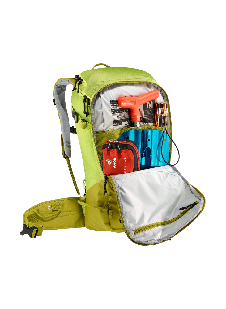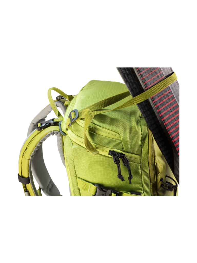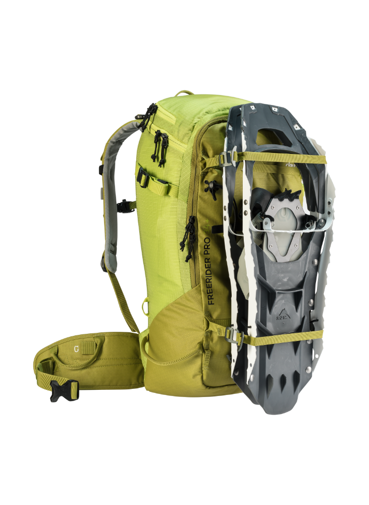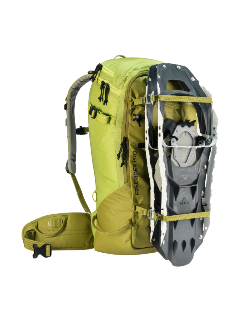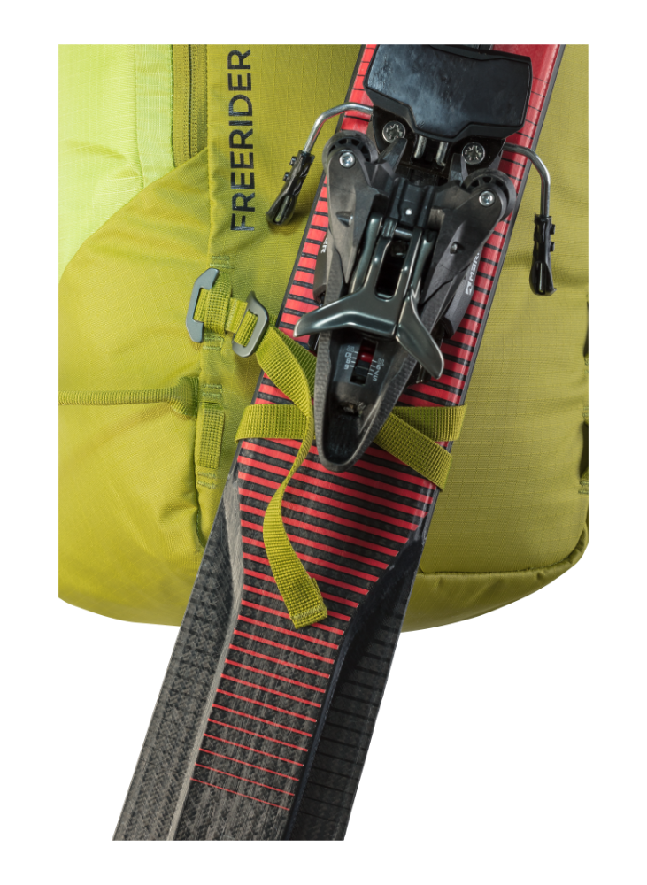 Create an accountThe Freerider Pro has all the features and flexible capacity you need for multi-day winter adventures in the mountains. This latest incarnation of the Freerider Pro has a new roll-top closure. This allows you to expand the capacity of the pack by 10 litres. The roll-top itself is also fitted with a stowable strap for the attachment of extra kit or a climbing rope, or to compress the roll-top itself. At times during the day when you don’t need your skis, snowshoes or snowboard, they can be attached to the outside of the pack quickly and easily using two dedicated gear straps; skis can be affixed diagonally across the back or in an A-frame, a snowboard or snowshoes in an upright position. These versatile gear straps can also be used for compression.