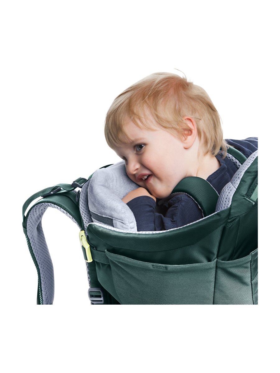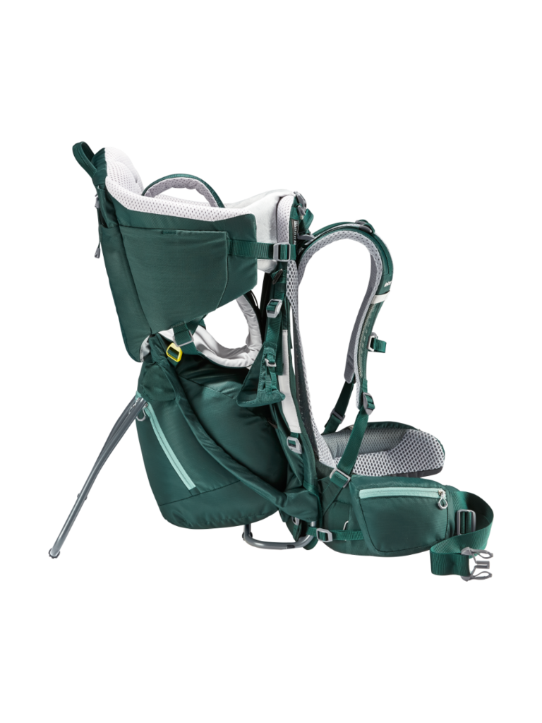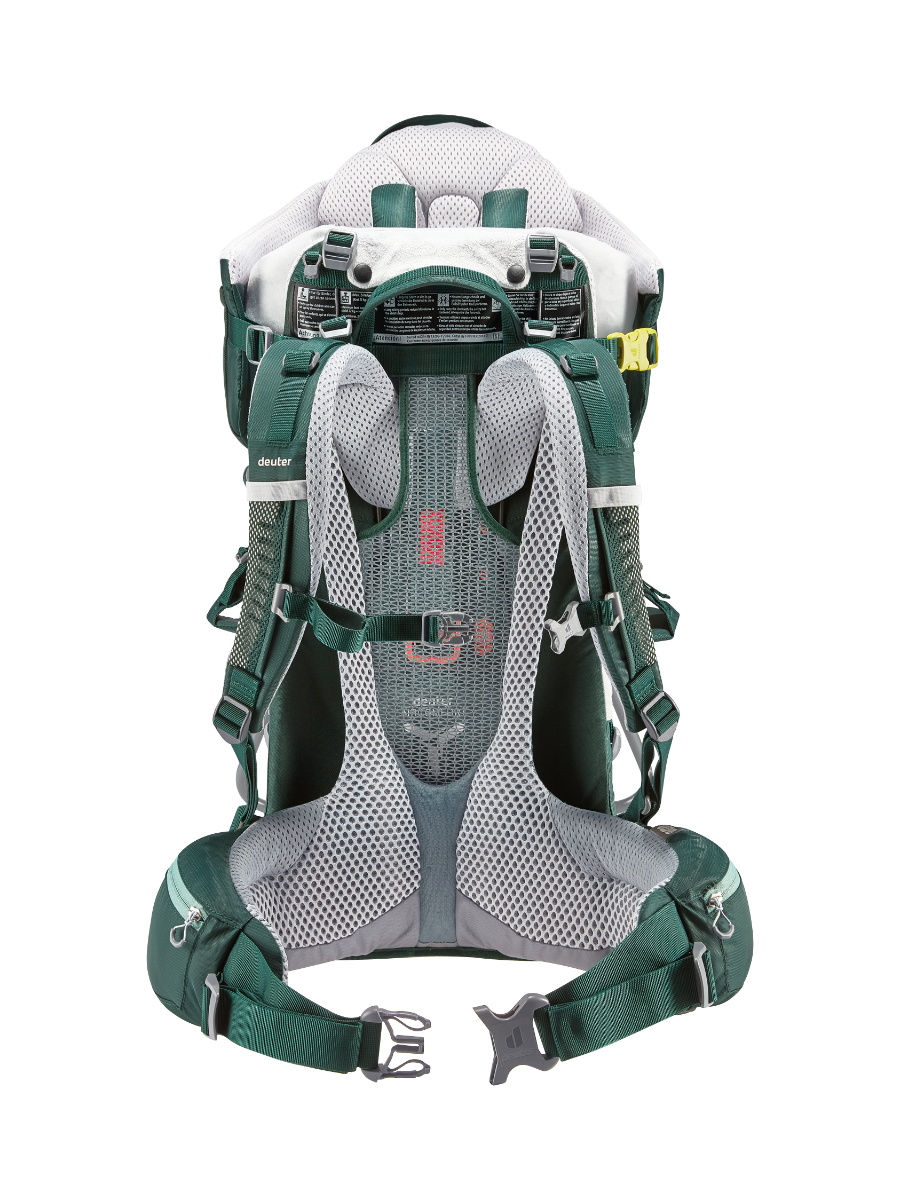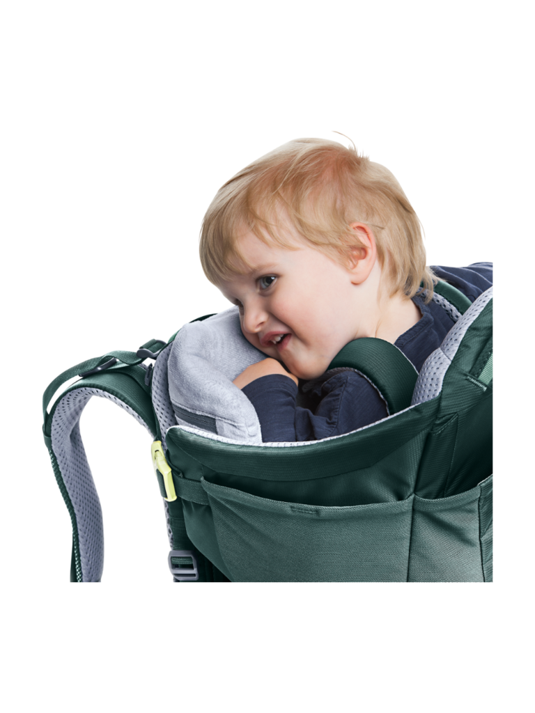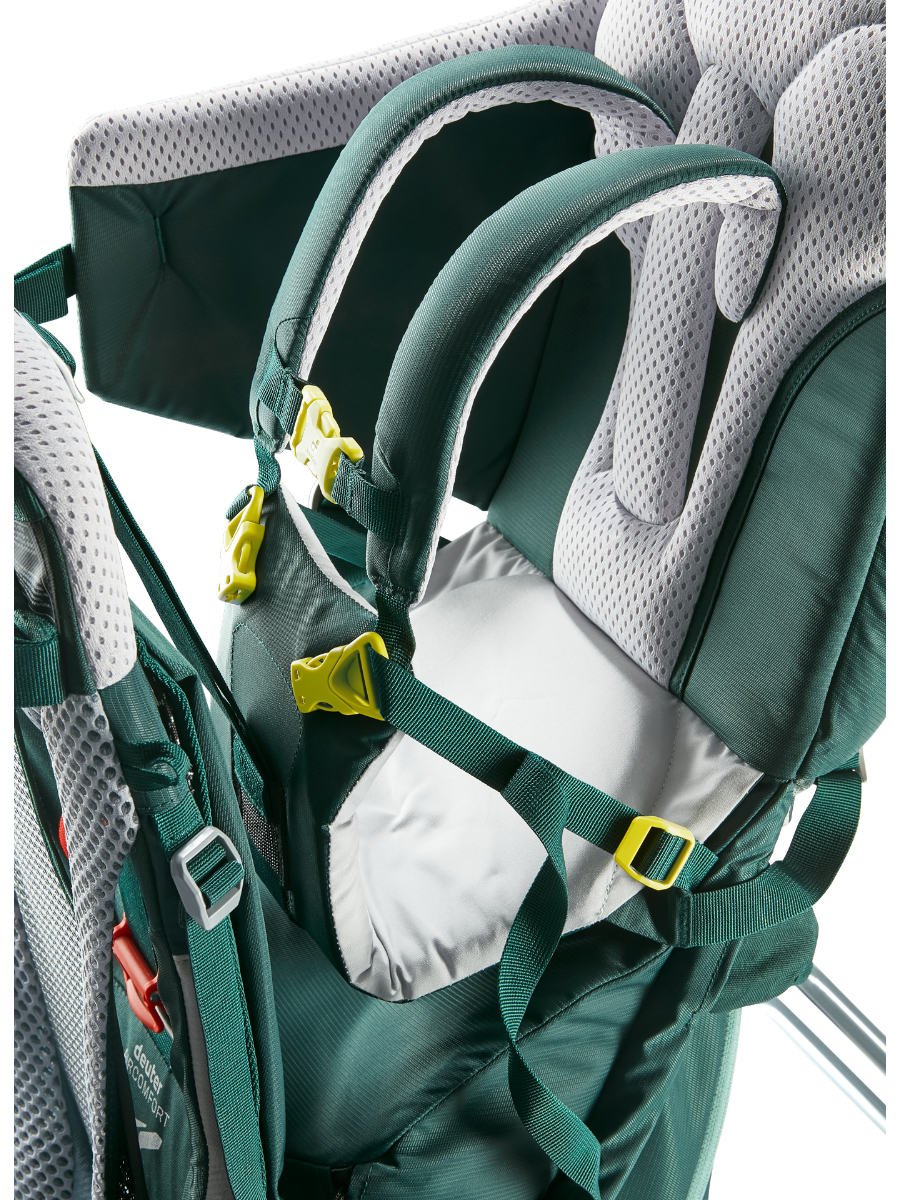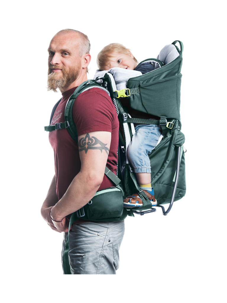 Create an accountThe ingenious, new Aircomfort Sensic Vario mesh backrest system makes mountain adventures all the more pleasant for families: The load is transferred perfectly, the child carrier fits snuggly while the back is fully ventilated. The child is afforded great comfort: The large, soft pillow gently braces the tired child‘s head even in the corners and supports a relaxing nap. The side access and the easy-to-access belt system of the child frame ensure safety – guaranteed by the TÜV GS safety seal of approval.