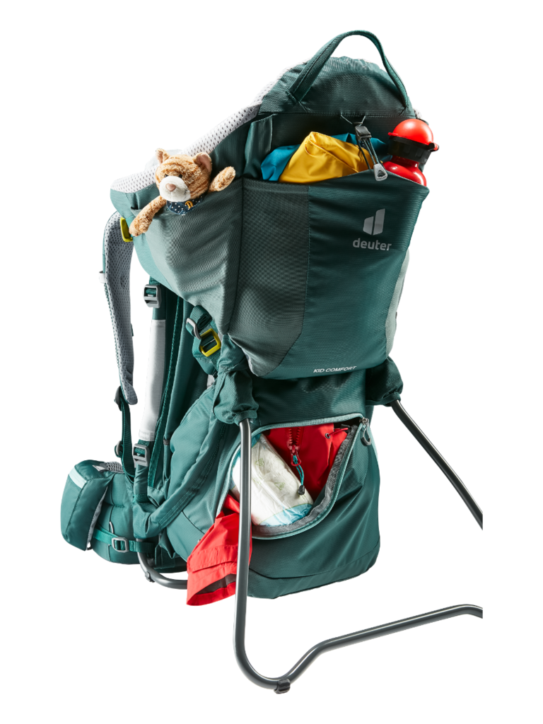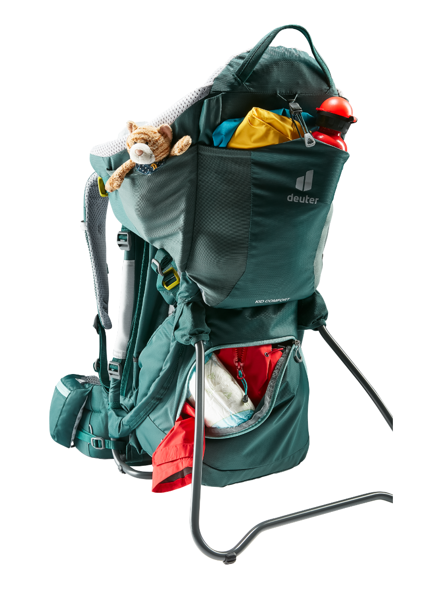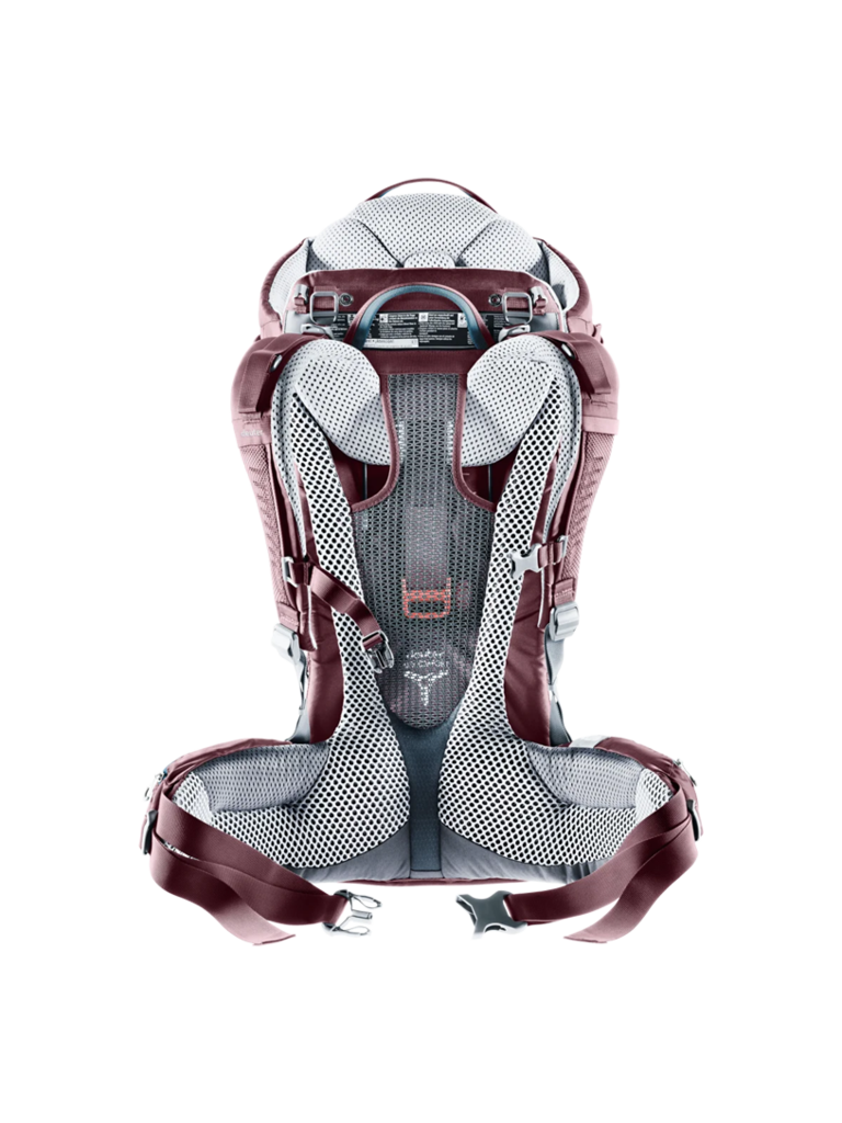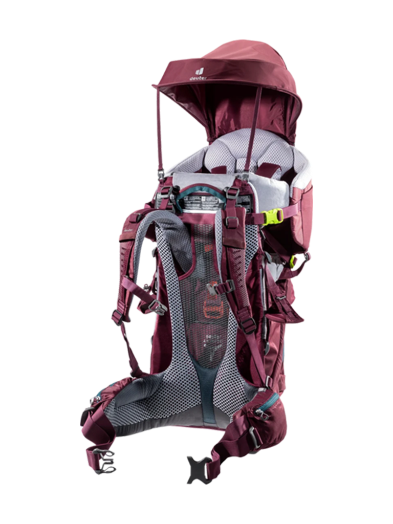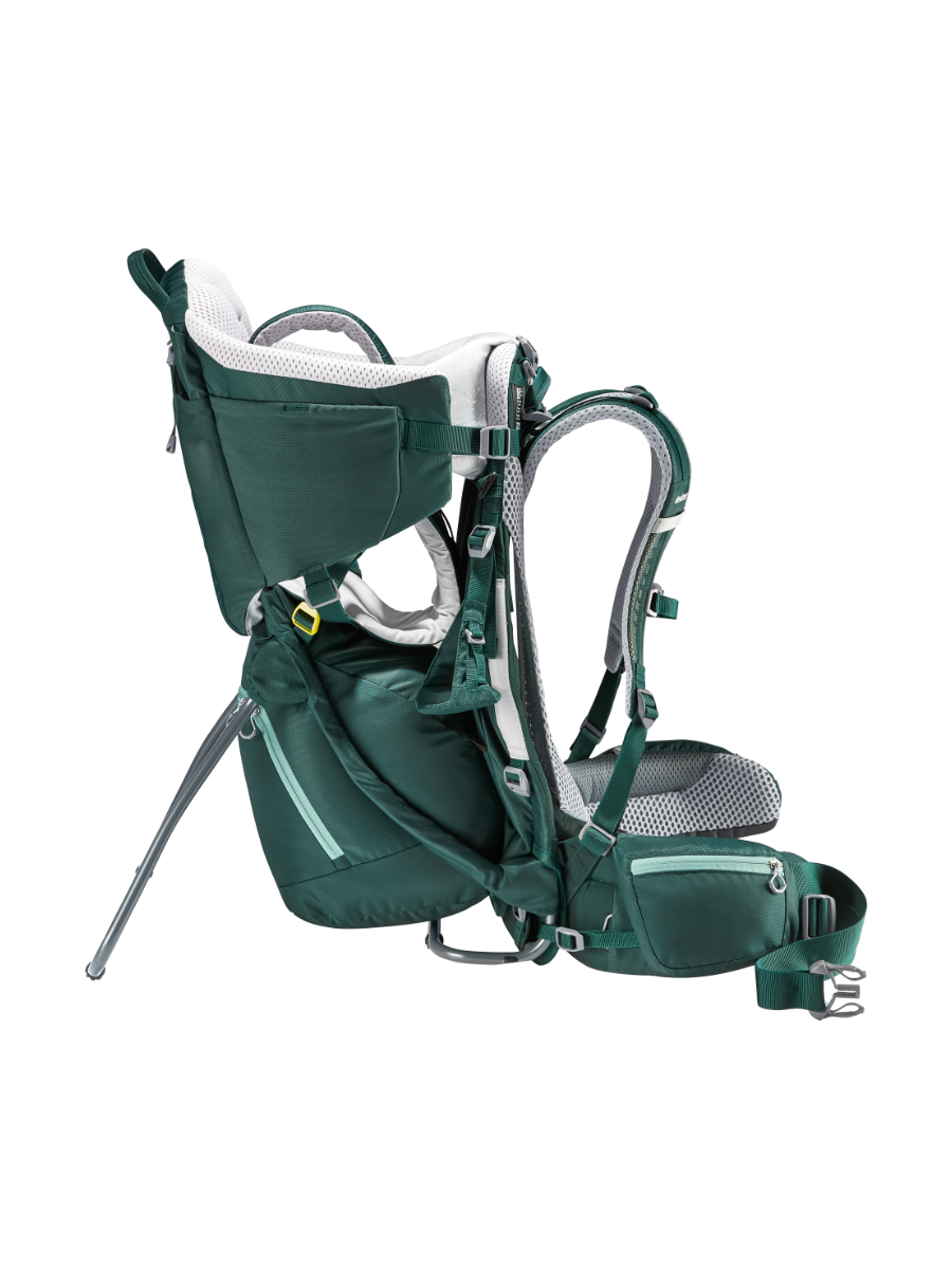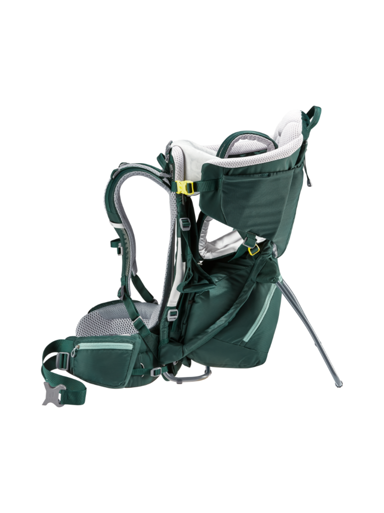 Create an accountThe ingenious, new Aircomfort Sensic Vario mesh backrest system makes mountain adventures all the more pleasant for families: The load is transferred perfectly, the child carrier fits snuggly while the back is fully ventilated. The child is afforded great comfort: The large, soft pillow gently braces the tired child‘s head even in the corners and supports a relaxing nap. The side access and the easy-to-access belt system of the child frame ensure safety – guaranteed by the TÜV GS safety seal of approval.