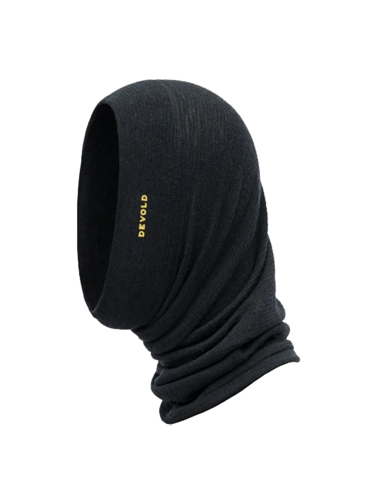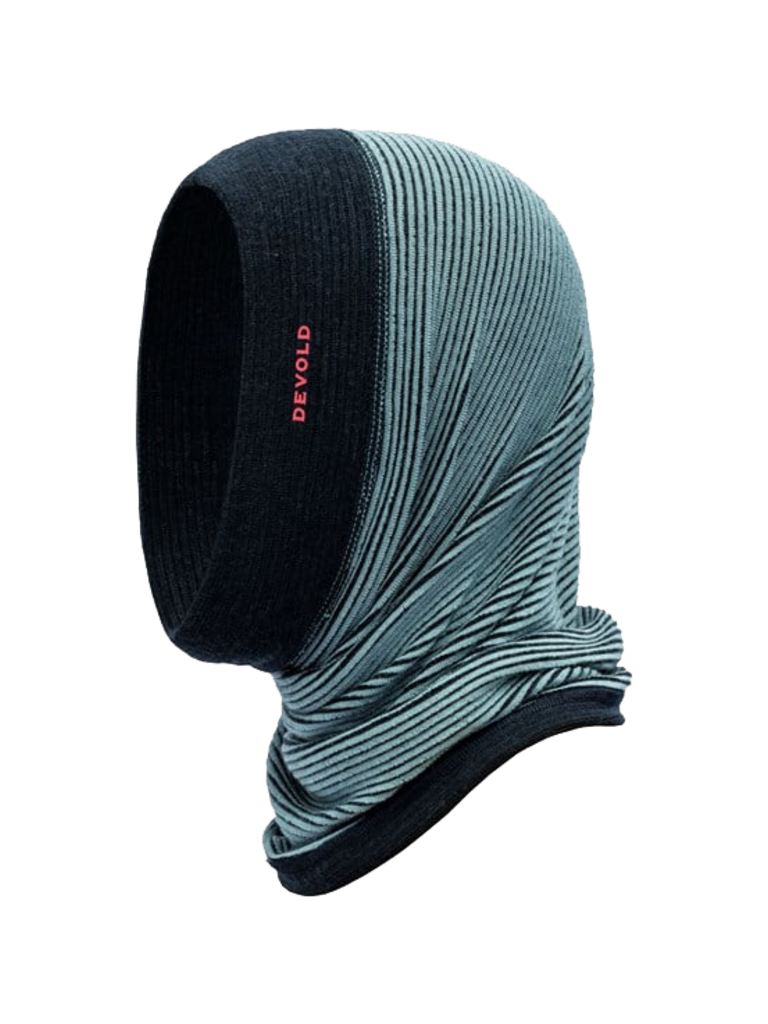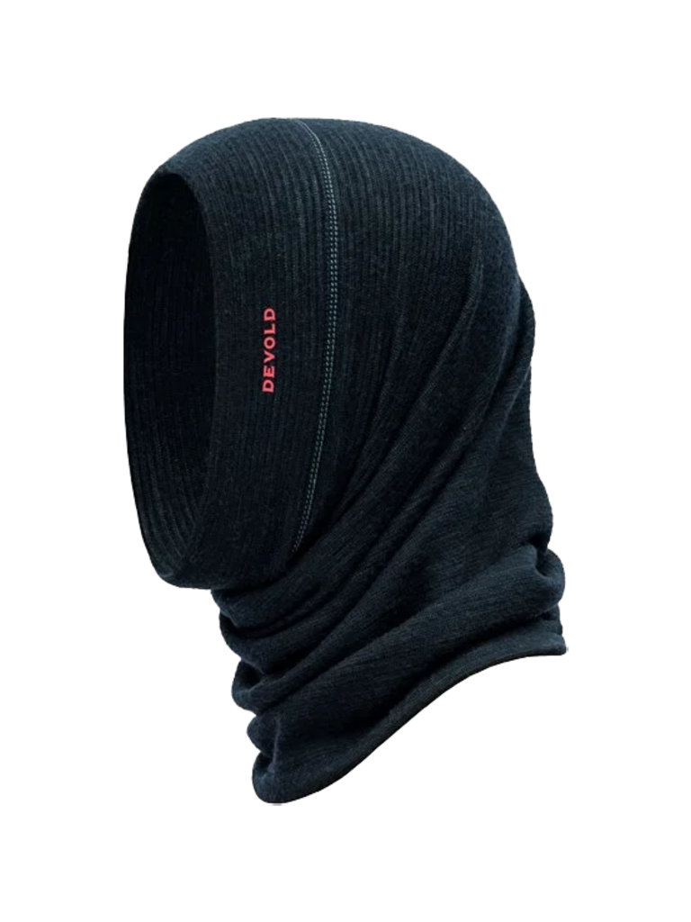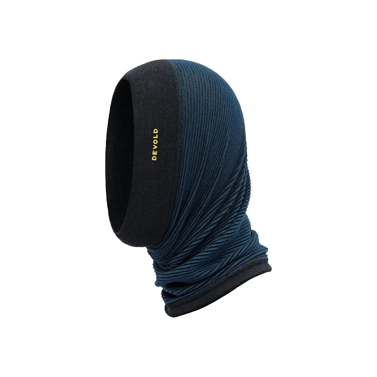 Protection against the weather and wind in cold conditions. Tight-fitting to the face, head and neck. Reversible, with different levels of insulation. Flat side provides breathability, while knitted side w/ air pockets provides a high degree of insulation