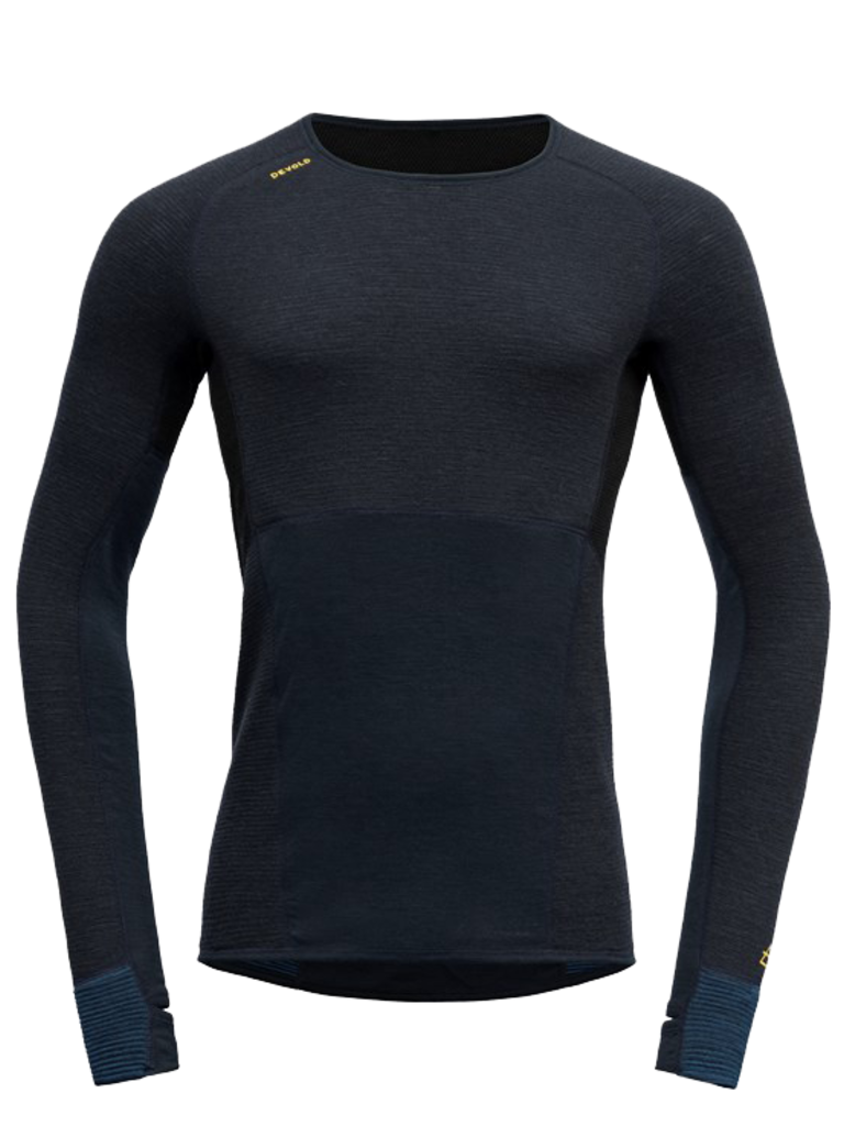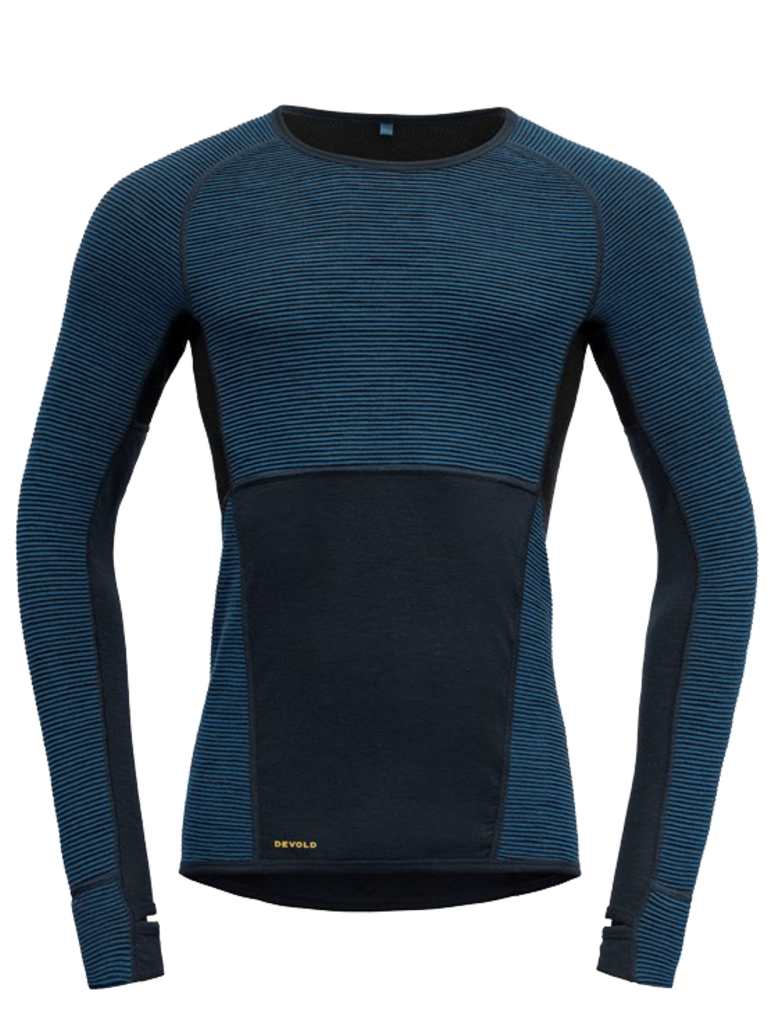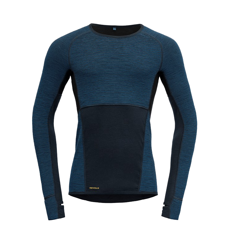 Create an accountDevold® Tuvegga Sport Air is a reversible base layer in Merino wool. The base layer is developed for high intensity activities where the need for insulation and the ability to regulate body temperature is important. The flat surface offers efficient moisture transportation and high breathability when worn next to skin. If more insulation is required, the garments can be reversed where a 3D fabric construction with air channel knit will generate additional insulation. To further enhance the ability to regulate body temperature and provide extra insulation, we have strategically placed Wool Mesh on the back panel. An elastic insulating rib knit, lightweight and soft, has been incorporated to absorb moisture and keep you dry during activity. For increased comfort the base layer has a wide Merino wool waistband, providing a comfortable fit and optimal shape. This all-in-one garment eliminates the need for extra clothing, reducing weight for demanding trips.