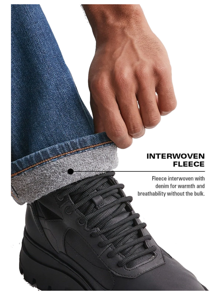 Fleece interwoven with denim for warmth and breathability without the bulk.