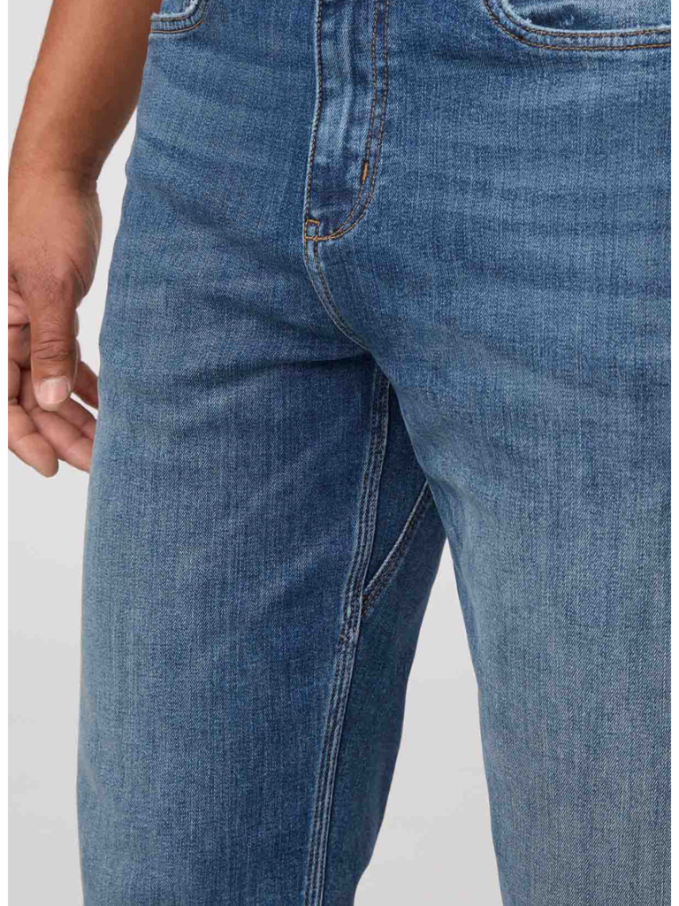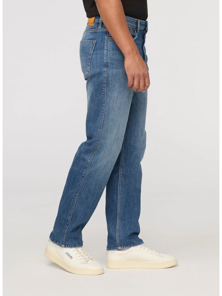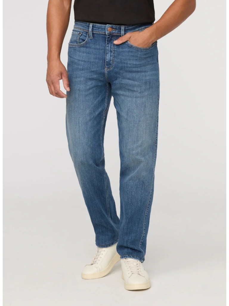 Relaxed through the hip with room through the seat and thigh in a modern straight leg.