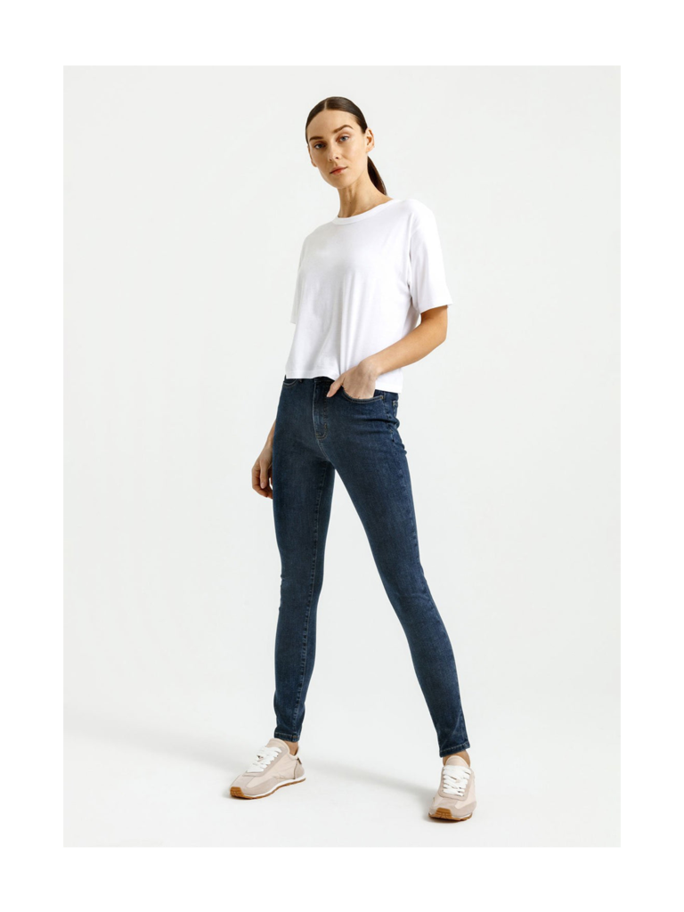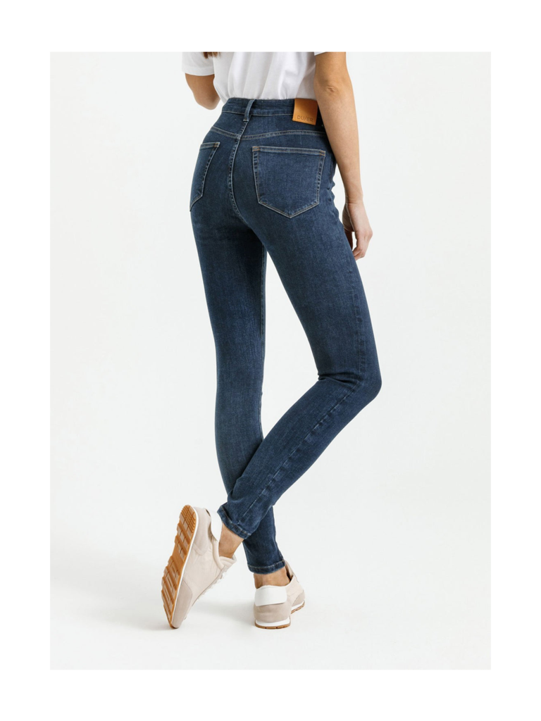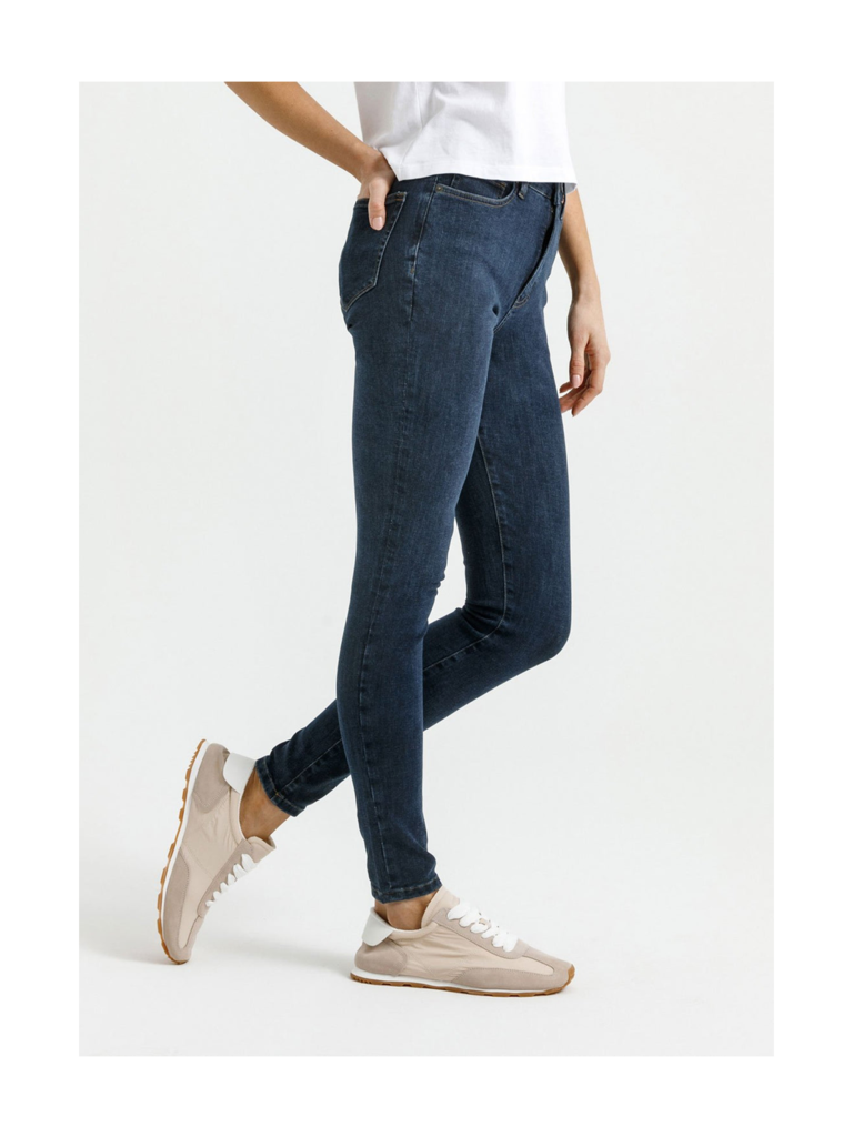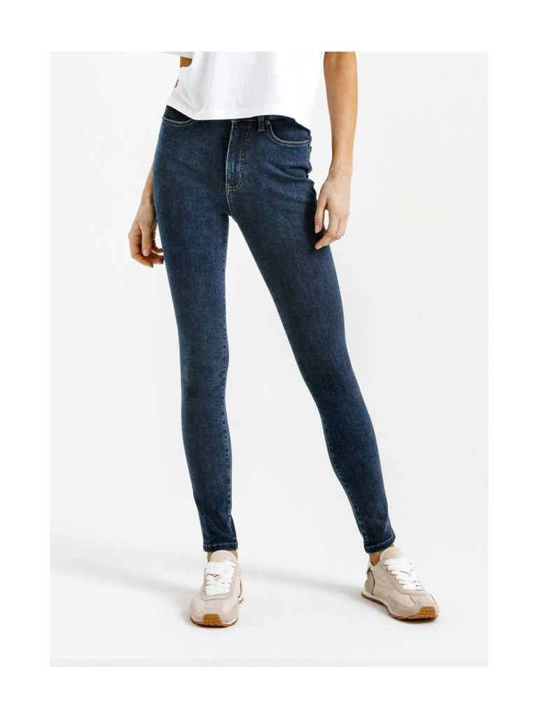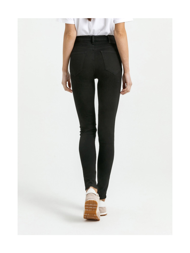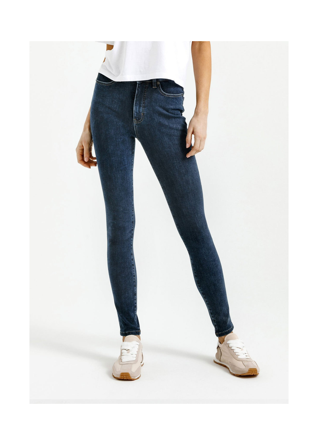 High rise sits at the belly button. Hugs body from waist to ankle.