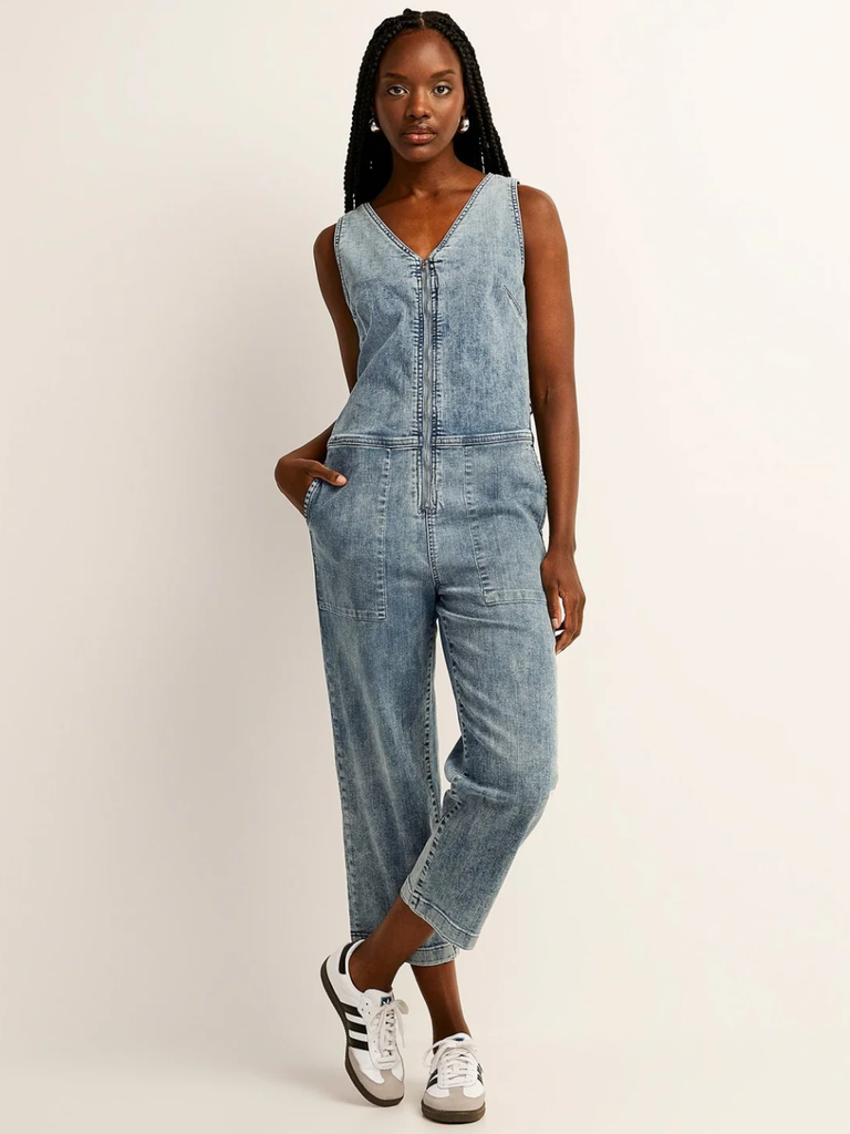 Designed to fit loose through the body with a dropped waist and cropped length.