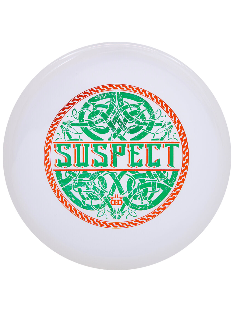 The Suspect is a perfect in-between disc. With a very low profile and small diameter, it feels like a putter. With built in stability and great glide, it can fly like a midrange. You can use it for either. When thrown hard, it flies flat and lands flat without ever flipping over. When thrown soft, it is a great stable approach disc. The blunted nose also makes it great for sticking the chains if you need a headwind putter. Amazing versatility and great feel, we suspect you will love this disc and the low scores that accompany it.