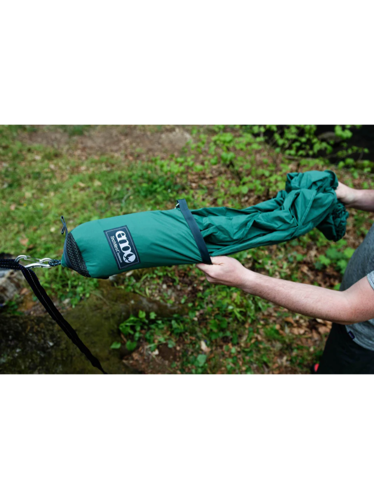 4. Rolltop stuff sack integrates at carabiner for faster setup and easier take down