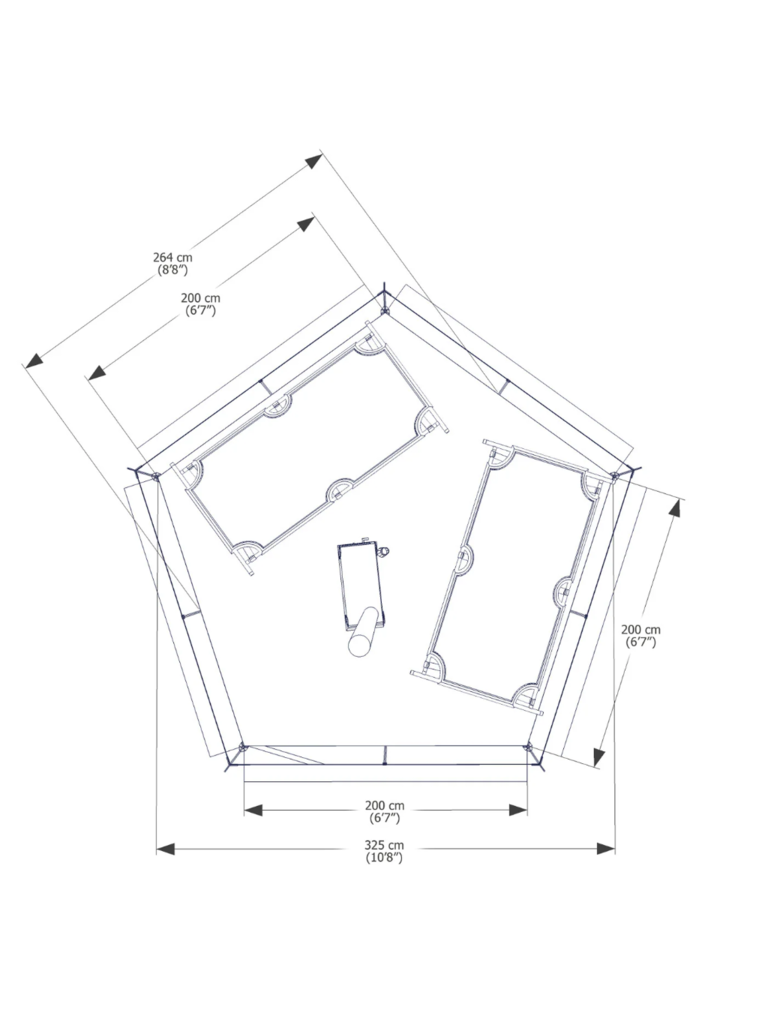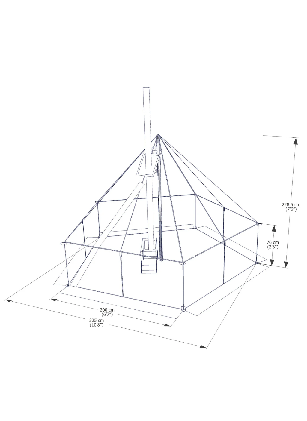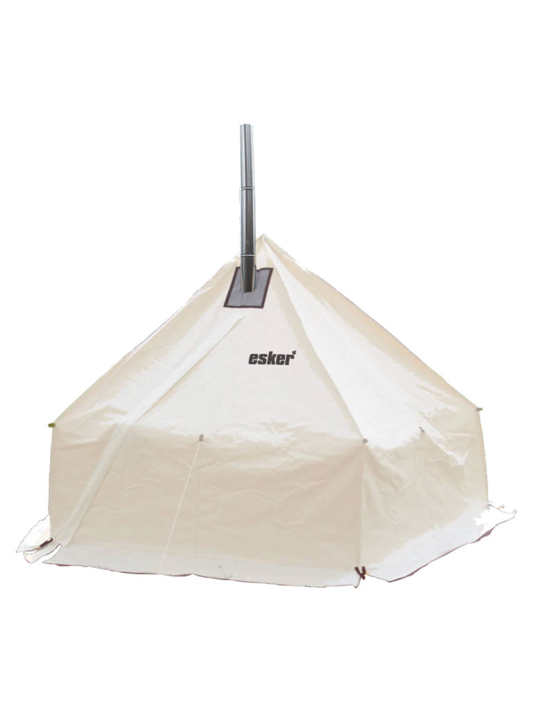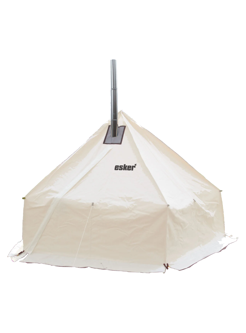 The Esker Arctic Fox 10x10 winter camping hot tent combines a 5 sided design in a lightweight, portable and quality tent perfect for the great outdoors. Made from Sunforger 10.10 oz army duck cotton canvas, with an installed stove pipe ring, it comes with an air vent, internal loops for a drying line and a 2-way zippered opening for comfort and function. The Esker Arctic Fox 10x10 sleeps 3 - 4 with a stove, or 4 - 6 without a stove.