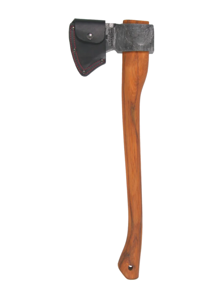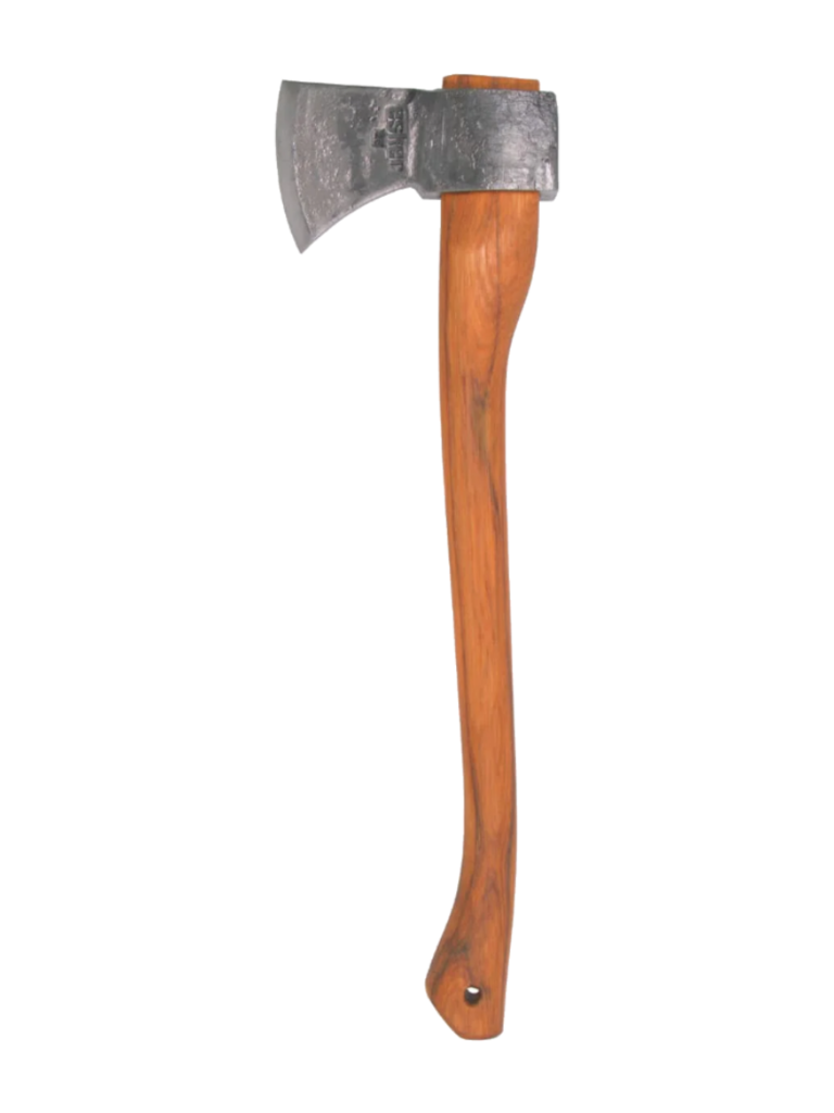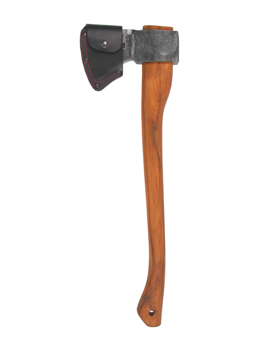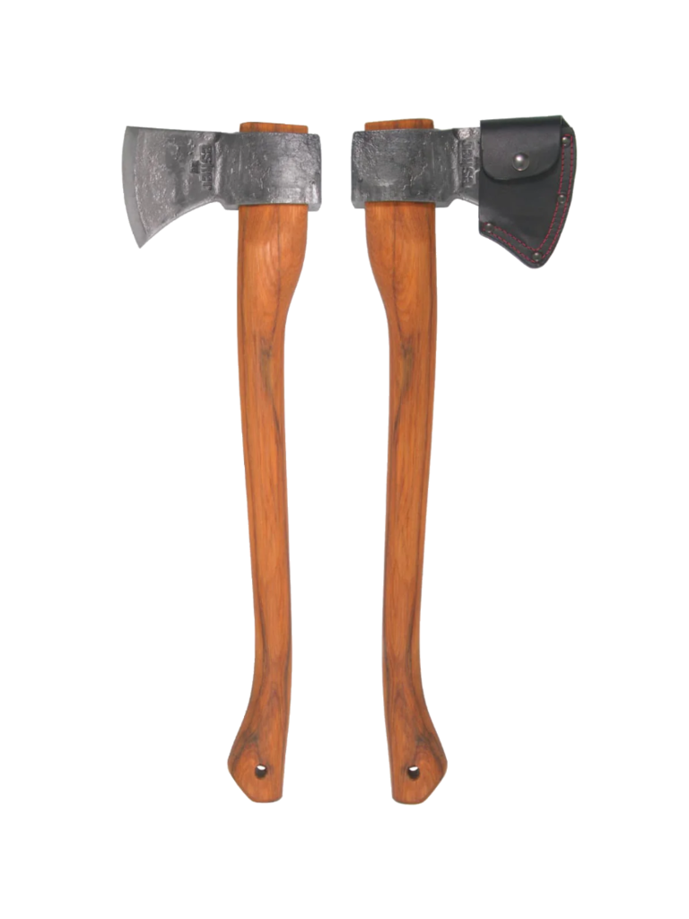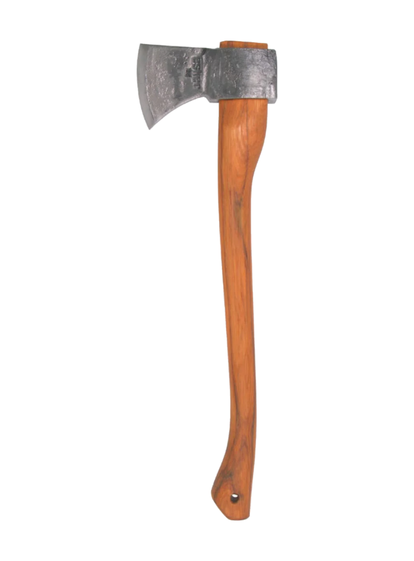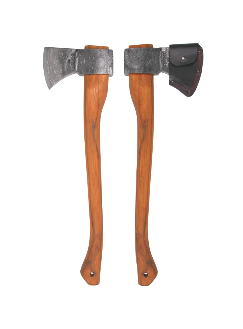 This muscular, powerful hand forged head takes it's inspiration from Hudson Bay pattern. Designed as an all around, multi-use tool useful for heavy work, splitting, felling, limbing whilst remaining compact and packable, the Esker Camp can handle any task big or small. Handle design allows for double handed, robust chopping as well as one handed control for lighter work.