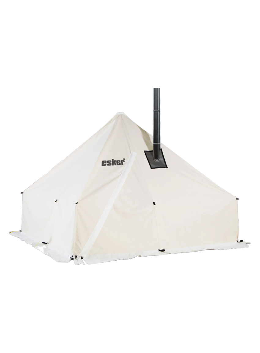 Create an accountThe Esker Classic 10x10 winter camping hot tent offers a traditional 4 sided pyramid wall tent design in a lightweight, durable, and portable tent that’s perfect for cold and snowy winters. Made in Canada from Sunforger 10.10 oz army duck cotton canvas, it comes with an installed stove pipe ring, an air vent, sewn loops for a drying line and a 2-way zippered opening for function and comfort. The Esker Classic 10x10 sleeps 3 - 4 with a stove, or 4 - 6 without a stove.