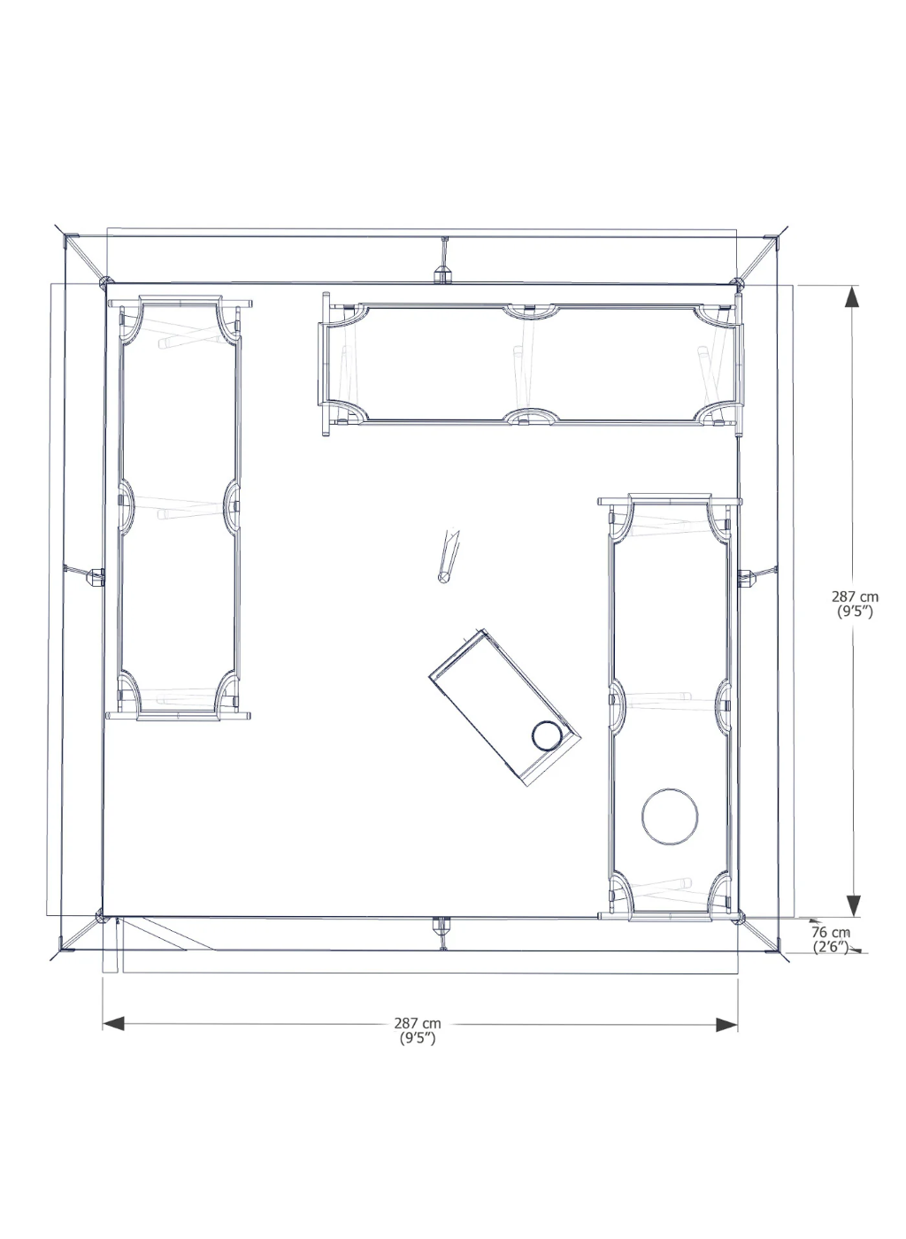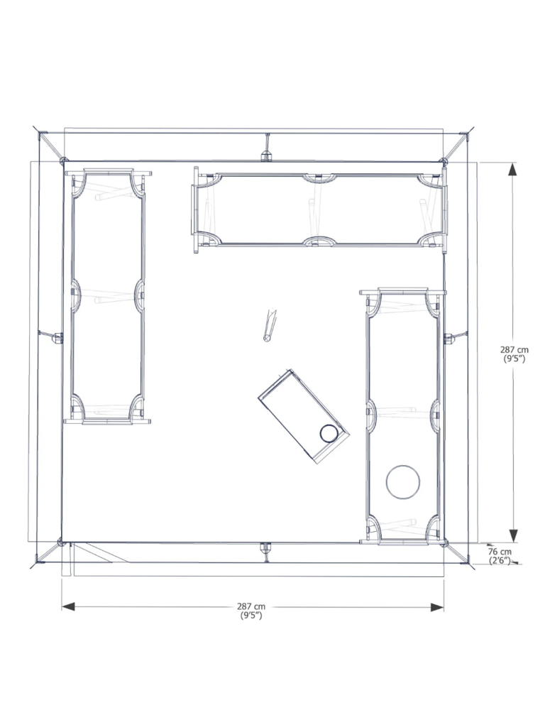 - Overall Area (approx): 9.65 m2 (10'x10')