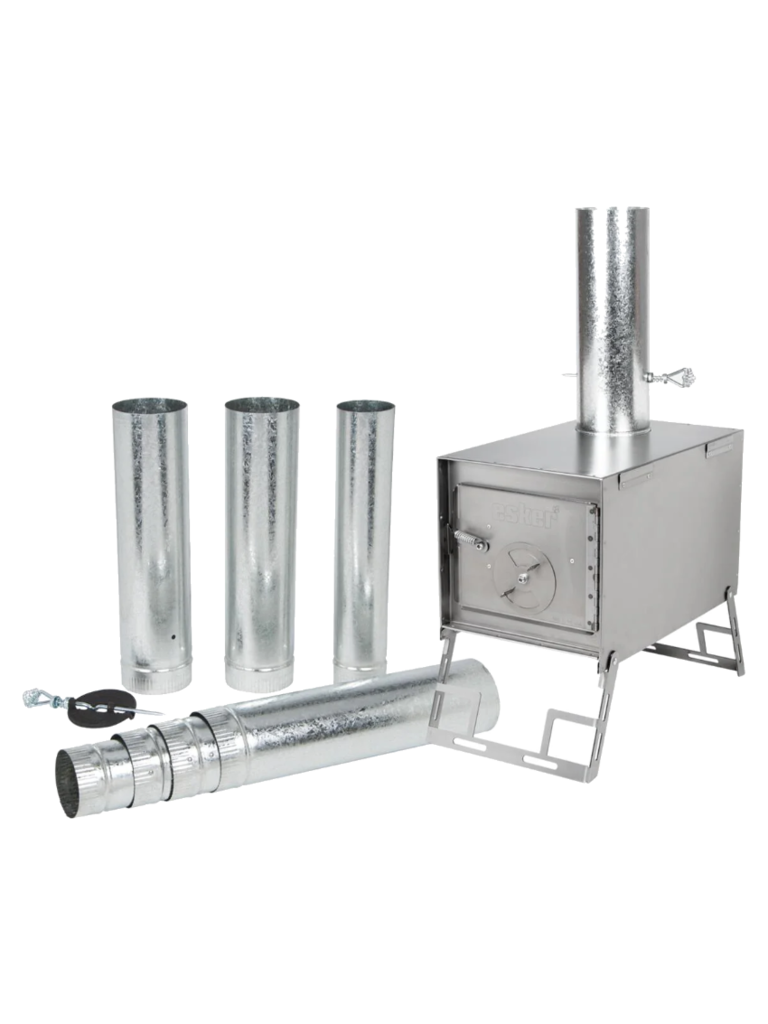 Create an accountIntroducing the Esker Erie Winter Tent Stove by Kni-Co. The smallest of Esker’s lineup, the Esker Erie features a 31L stove box, nesting galvanized pipes, and Esker’s specially designed stabilizing snow float legs that can be used with branches or poles to provide greater safety and security. All stove pipes stow inside the stove box and Esker legs fold up for light and easy transport. The included damper draft control on the stove door makes temperature regulation quick and precise, and the 22 gauge cold rolled steel makes for a lightweight yet durable stove. Pair this stove with the Esker 9x9 Arctic Fox Winter Tent when warmth along with minimal weight and size are your primary concerns.