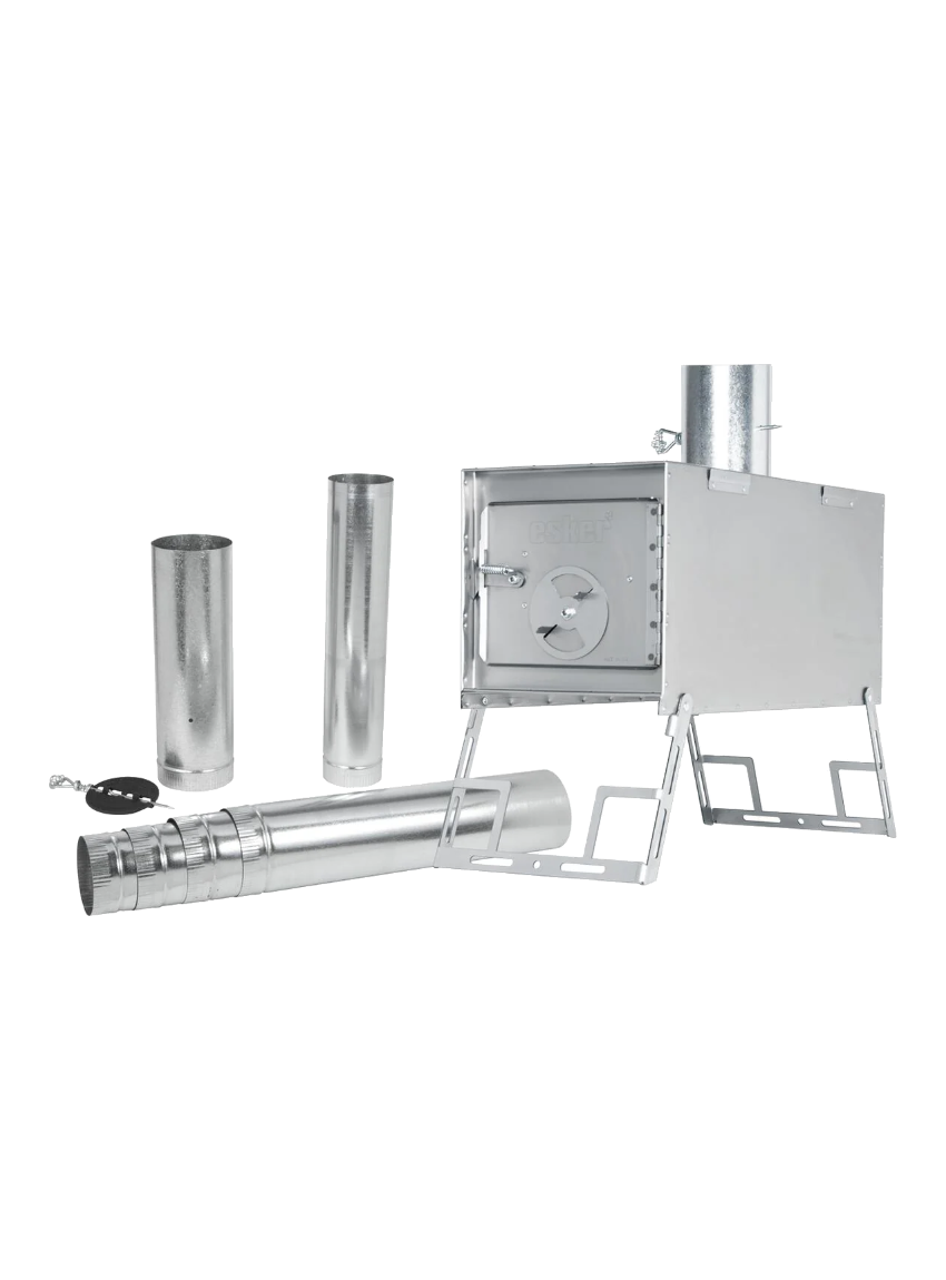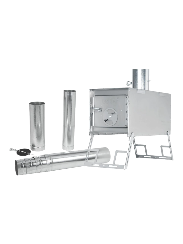 Create an accountIntroducing the Esker Huron Winter Tent Stove by Kni-Co. Offering both group heating capacity and a small footprint, the Esker Huron features nesting galvanized pipe and a 35.5L stove box on Esker’s specially designed legs for stabilizing the stove with branches or poles. All stove pipes stow inside the stove box during transport and Esker legs fold up for light and easy transport. The included damper and draft control on the stove door allows for precise control, and the 22 gauge cold rolled steel makes for a lightweight yet sturdy stove. Pair this stove with the Esker 10x10 Arctic Fox or 10x10 Classic Winter Tent to make the most of your winter.