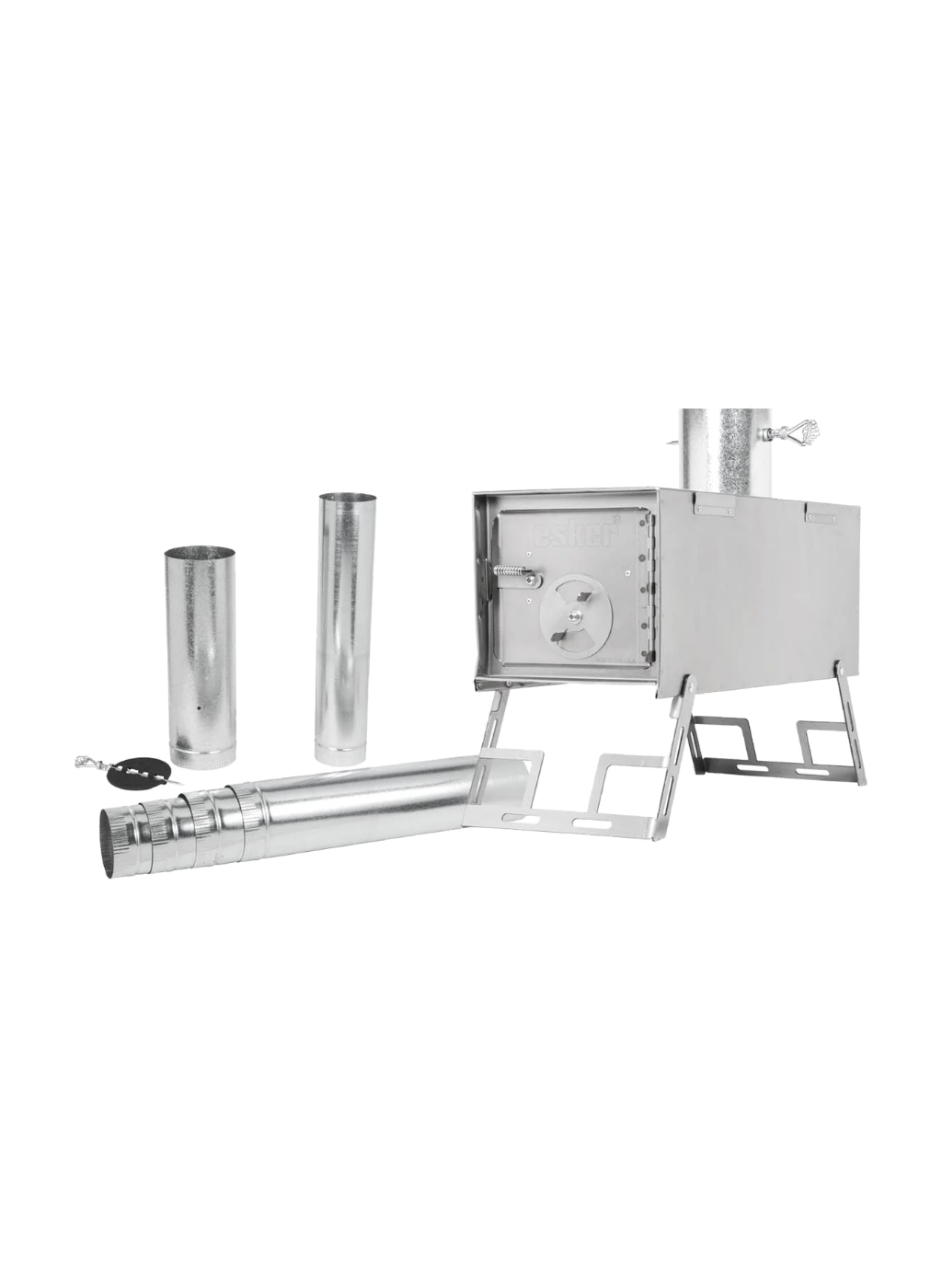 Create an accountIntroducing the Esker Ontario Winter Tent Stove by Kni-Co. These stoves feature nesting galvanized pipes and a stove box on Esker’s specially designed snow float legs for stabilizing the stove with branches or poles. All stove pipes stow inside the stove box and Esker legs fold up for light and easy transport. The included damper and air intake control on the stove door makes temperature regulation a breeze. The 22 gauge cold rolled steel makes for a lightweight yet sturdy stove. Pair this stove with the Esker 10x10 Arctic Fox or 10x10 Classic Winter Tent to make the most of your Canadian winter outdoors.