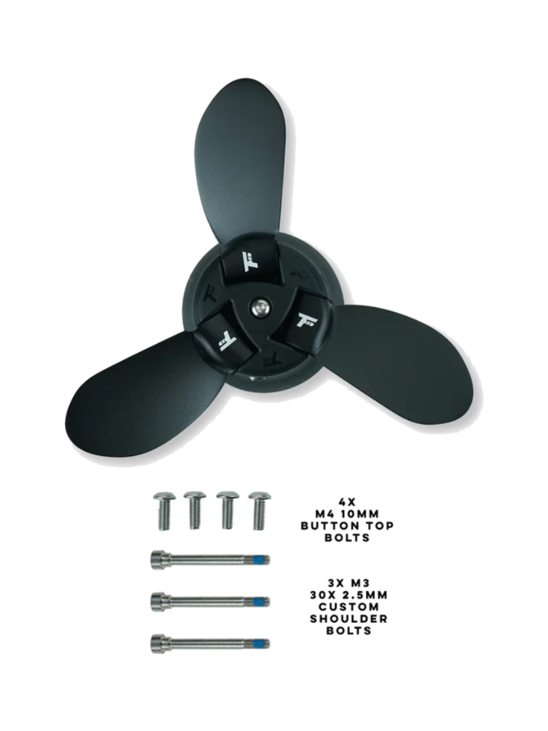 Designed to increase low end thrust, the Three Blade Propeller Hub is an optional upgrade for Foil Drive Assist PLUS units, a game changer for riders pushing the limits of rider weight, board size and foil size.