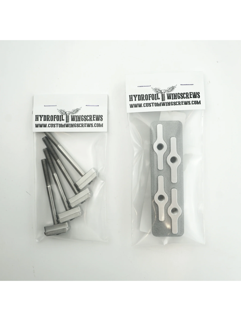 Create an accountSatin dark grey anodized 6061-T6 Aluminium Wingnuts with Stainless Steel Helicoil Inserts. Grade 5 (6Al-4V) Titanium M7x1 studs and t-nuts. For use with Foil Drive Gen 2 MAX (not for use with SLIM). Will work on boards with either Futures style tracks or deep tracks. Designed to be used with the Armstrong Performance mast as well as masts that use M8 hardware. May not work with Cabrinha Carbon Masts or others will deeply recessed screw holes.
