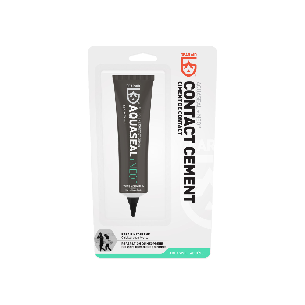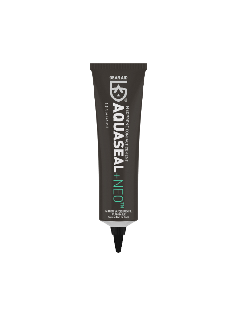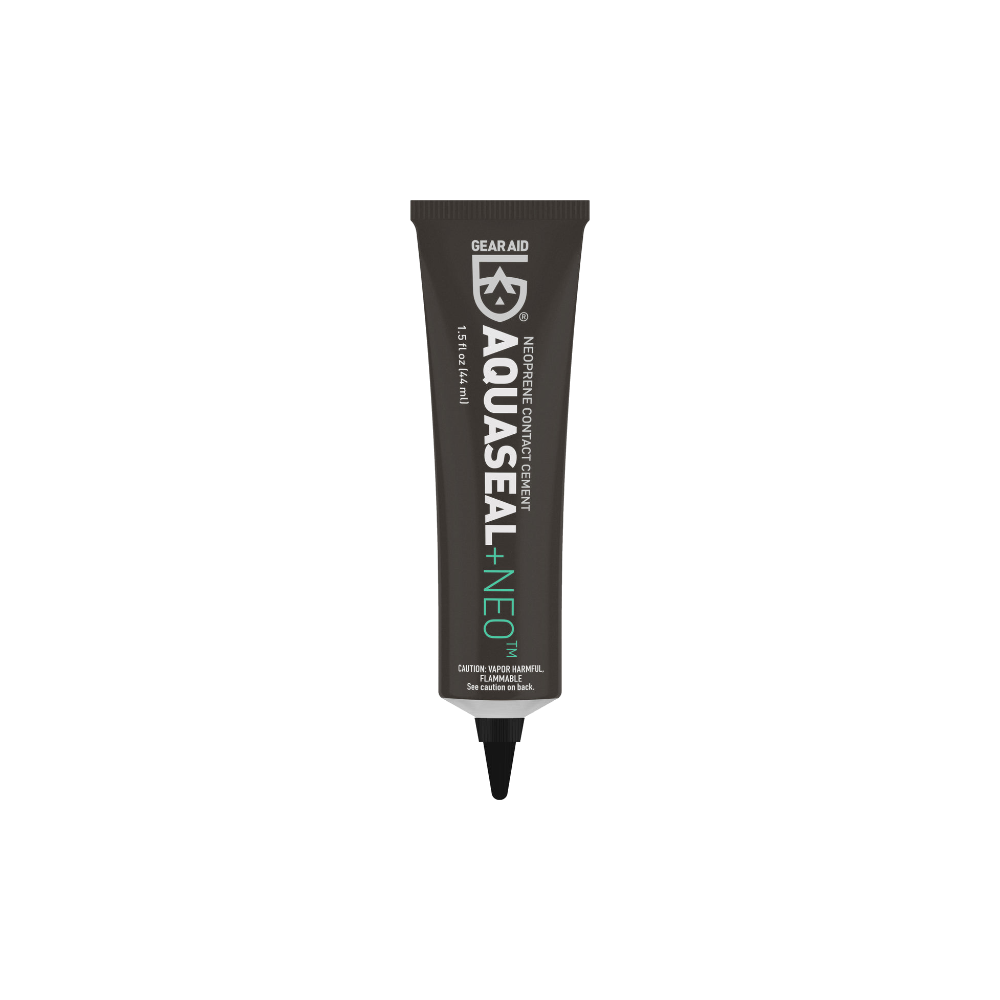 Wetsuit repair is simple and quick with Aquaseal NEO. Previously known as Seal Cement, this black contact cement is formulated to permanently bond with neoprene and other coated materials. With this flexible liquid adhesive, repairing neoprene gear can be done within half an hour. Apply to waterproof waders, gloves, booties, and spray skirts by the water. Or re-seal a leaky gasket at home. When rips and tears happen, use this contact cement to repair stretchy, high-performance fabrics and protect it from abrasions. Before venturing out to that favorite fishing hole or dive spot, bring Aquaseal NEO along for unexpected repairs and save that expensive gear.