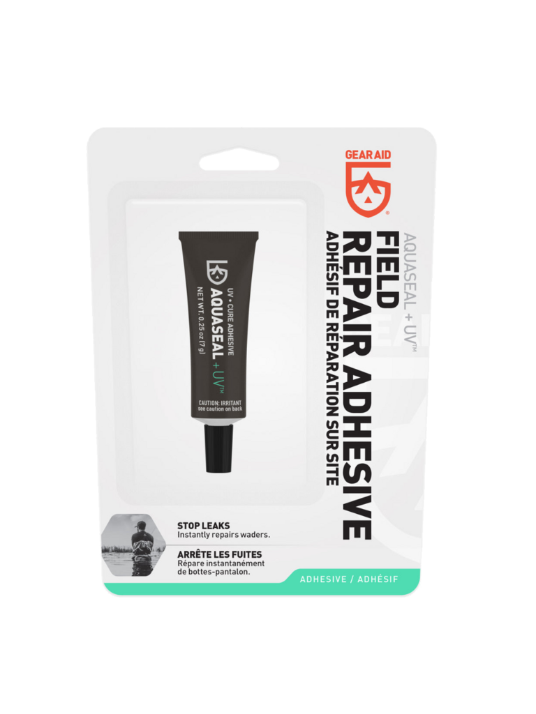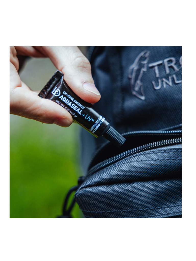 Create an accountWhen gear fails in the outdoors, use Aquaseal UV. This quick curing adhesive dries instantly when exposed to sunlight and ultraviolet light. This small, but mighty 0.25 oz of adhesive even works under cloudy skies. As a multipurpose formula, it’s ideal for all types of drysuit or wader repair – bonding directly to neoprene, nylon and GORE-TEX® fabrics. It’s also a useful adhesive for coating fly line knots, or as head cement for fly tying. For fast, stress-free field repairs, reach for Aquaseal UV.
