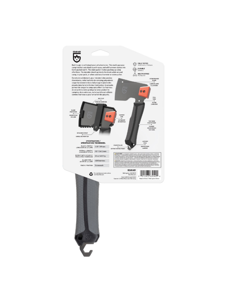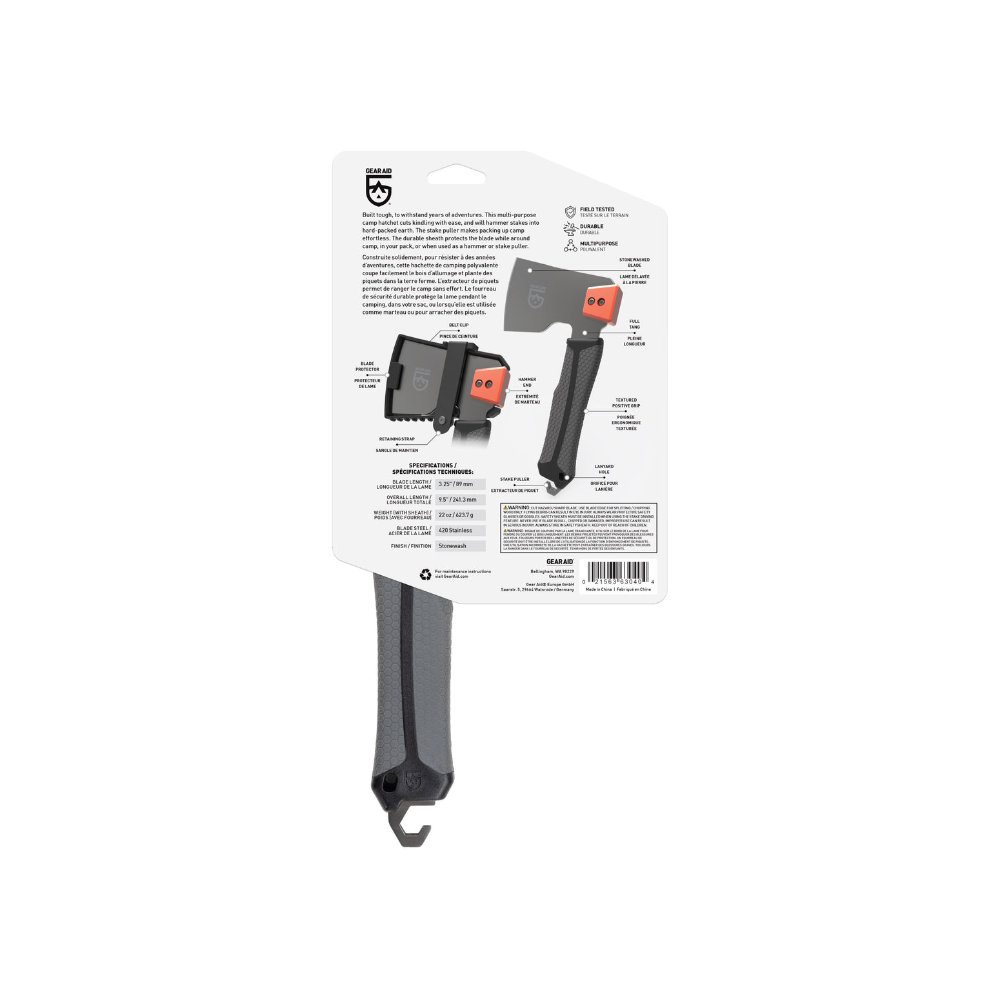 Create an accountBuilt tough to withstand years of adventures. This multi-purpose camp hatchet cuts kindling with ease, hammers stakes into hard-packed earth, and the stake puller makes packing up camp effortless. The durable sheath protects the blade while around camp, in your pack, or when used as a hammer or stake puller.
