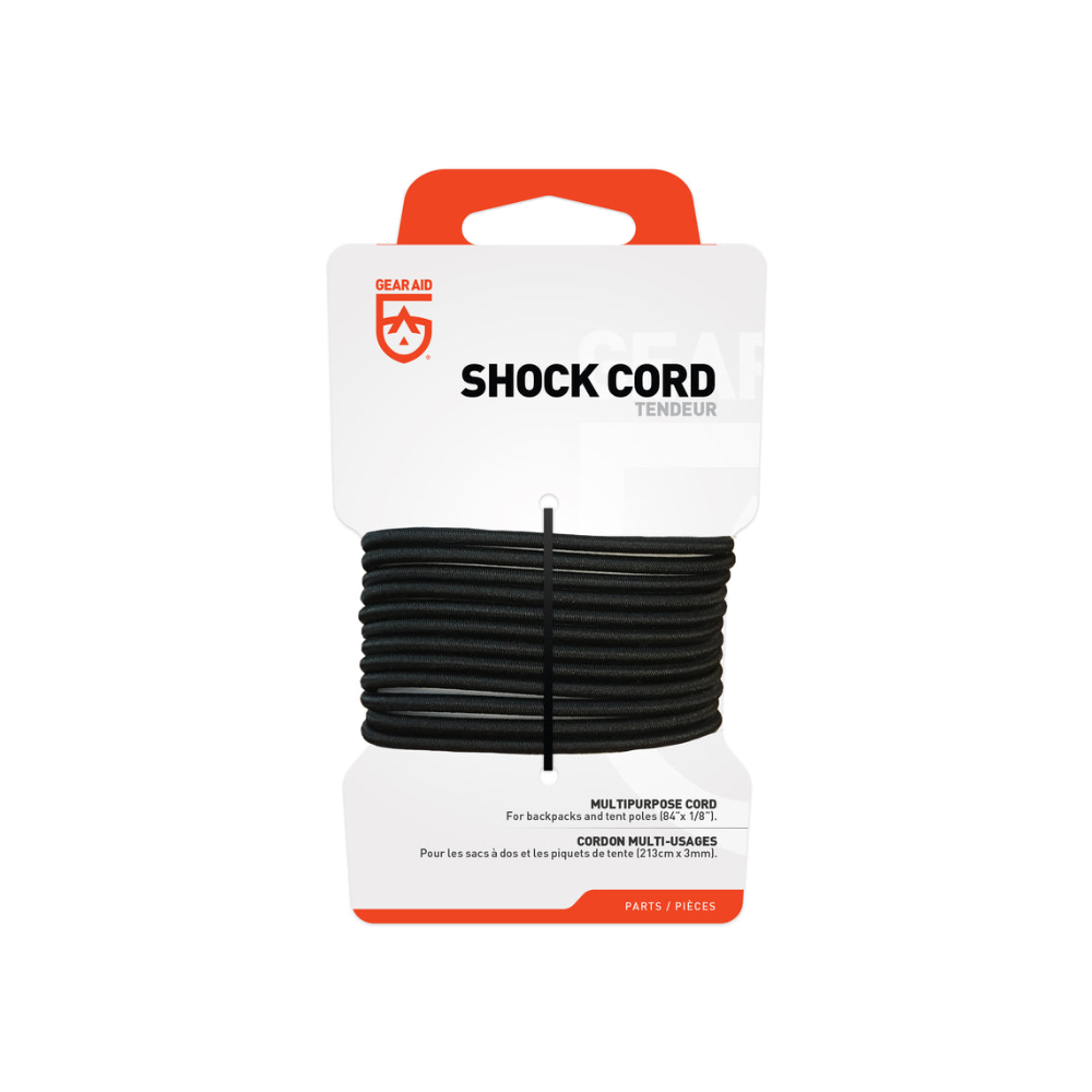 GEAR AID brings you 84'' of Shock Cord for all repair kits. Use it to tighten tarps or hammocks, replace a cord in tent poles or jackets, or even fasten gear to packs. A versatile tool that every outdoor enthusiast should have, Shock Cord can get you out of many unexpected situations.