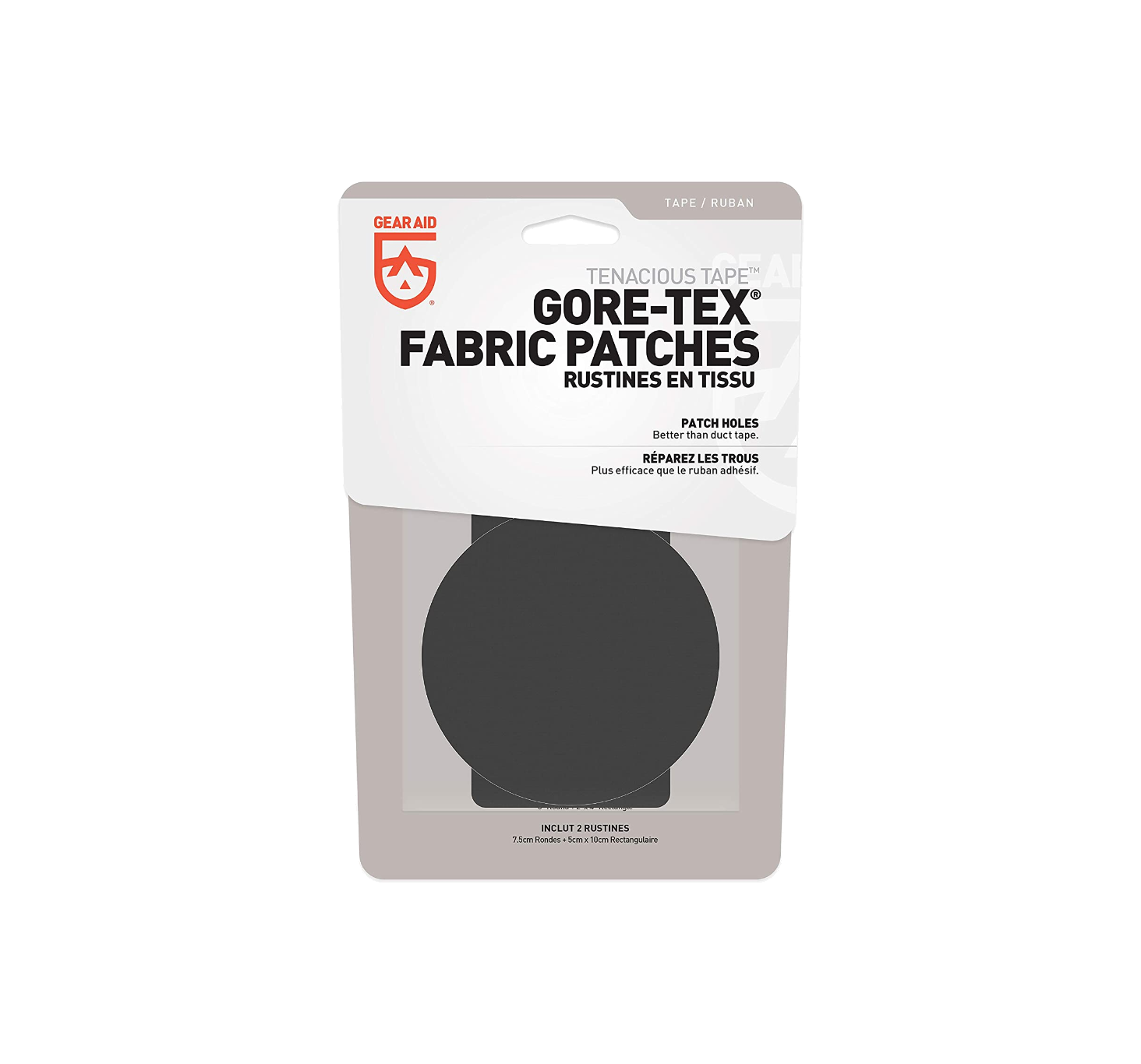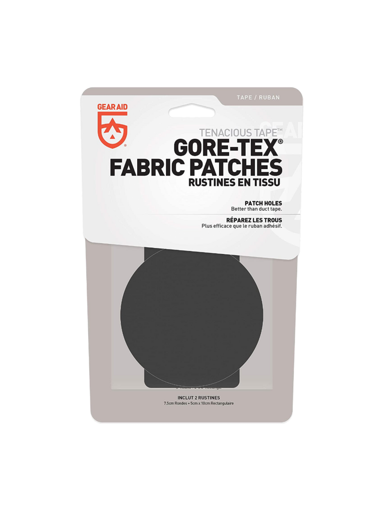 - Quickly patches tears in GORE-TEX jackets and rain pants without sewing or hassle