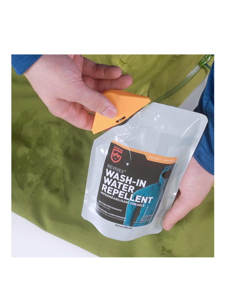 Create an accountWaterproofing the whole family’s rain gear has never been easier with Revivex Wash-In Water Repellent. One treatment with this DWR wash creates and restores waterproofing protection to high-tech gear including GORE-TEX® jackets and pants. As a highly concentrated water repellent, you can treat multiple garments at once. Just pre-wash with Revivex Pro Cleaner, add one ounce per garment to your sink or washing machine, then tumble dry. It'll add a protective layer to fight the elements without impacting breathability. Extend the life of your favorite outerwear and say goodbye to wetness with Revivex Wash-In Water Repellent.