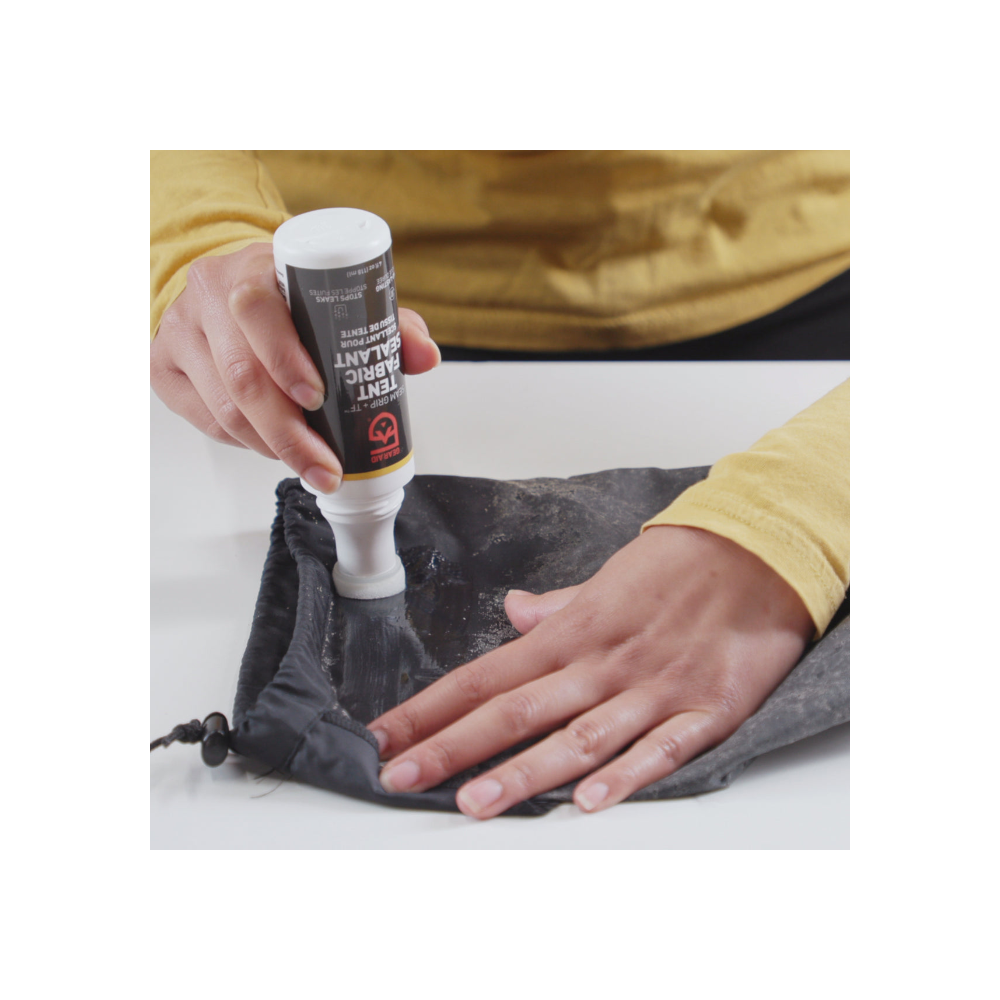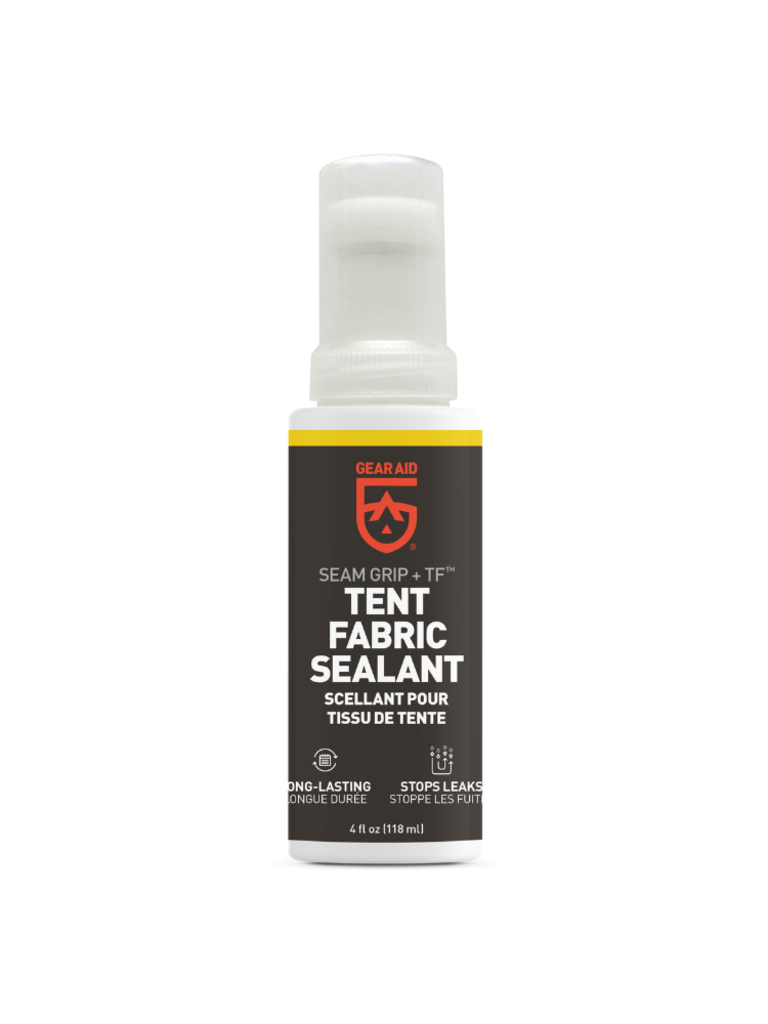 Restore polyurethane (PU) coating to like-new condition with Seam Grip TF. Previously known as Tent Sure, this clear sealant makes tent waterproofing hassle-free with its built-in foam applicator brush. Over time, the protective waterproofing on a tent floor, rain fly, or tarp wears out and begins to flake off. Easily apply Seam Grip TF to the fabric and treat up to 85 sq ft of material to prevent gear from leaking with only one 4 fl oz bottle. When a rainfly gets sticky or backpacks start delaminating, make them perform again with Seam Grip TF Tent Fabric Sealant.