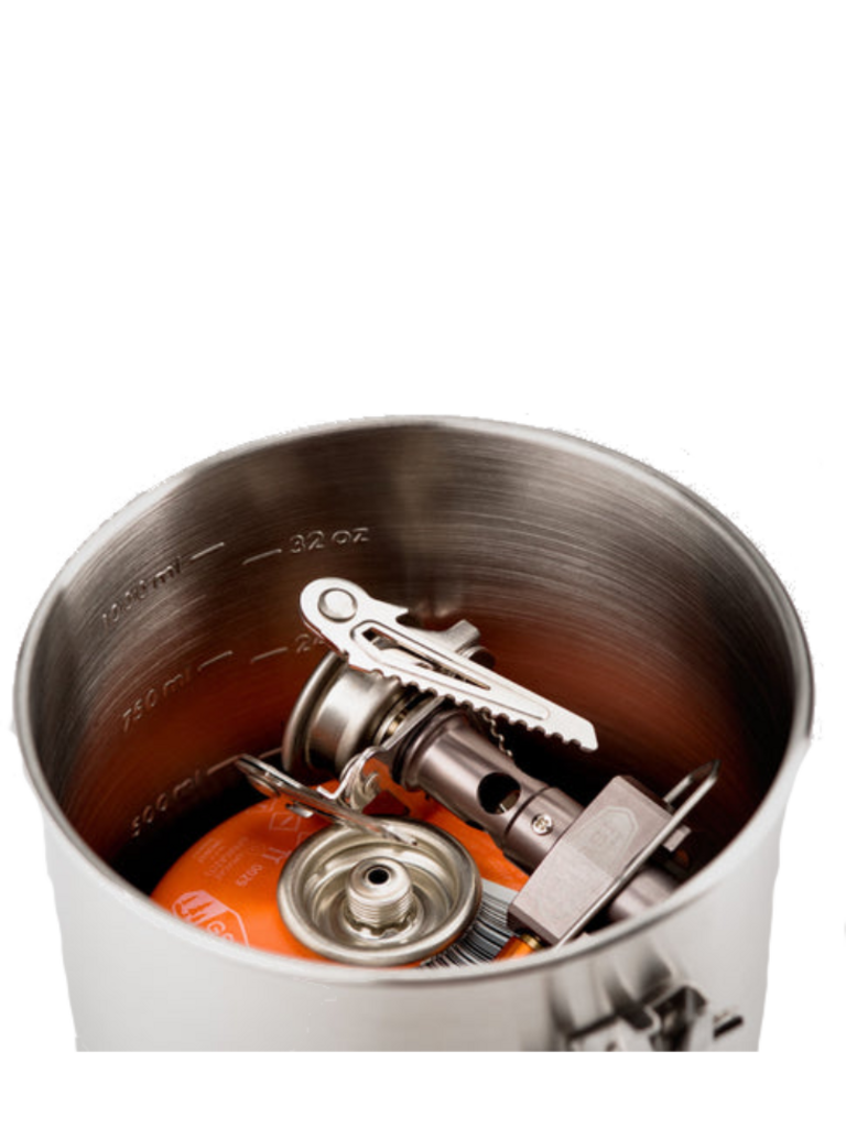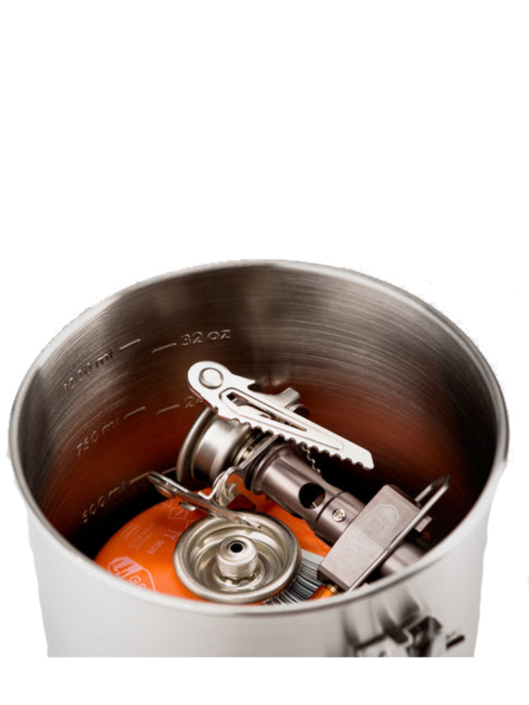 Create an accountThanks to Glacier Stainless steel fire-proof, rust-proof, scout-proof construction, this boiler can really take the heat. And with handy details like a folding, locking handle, helpful graduations and a novel niche for nesting a stove and fuel canister, this is one pot that will eat up the backcountry and still shine.