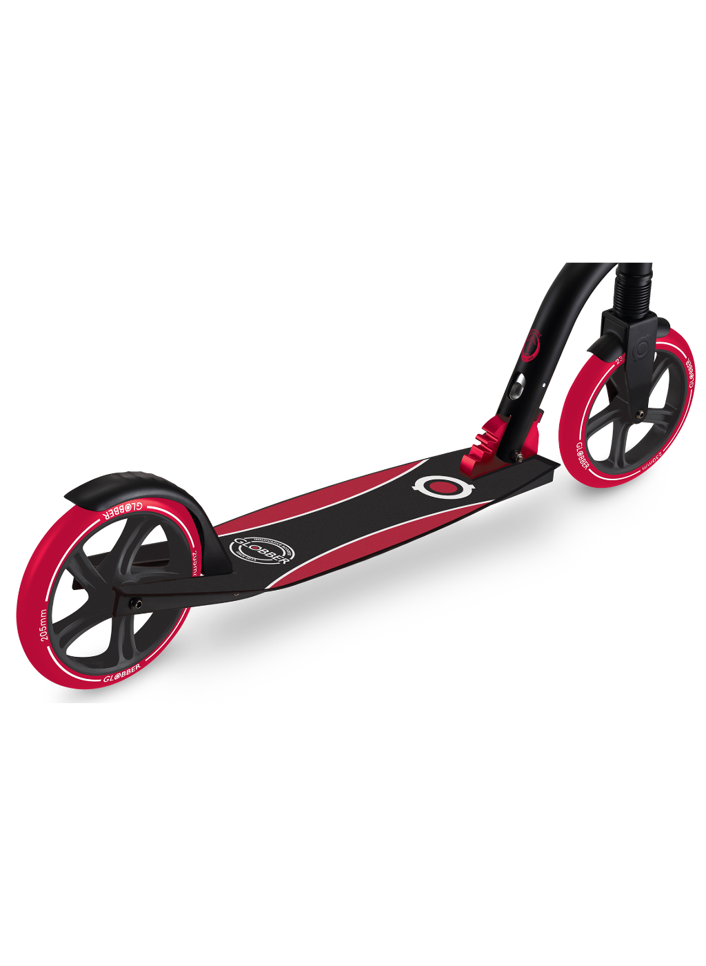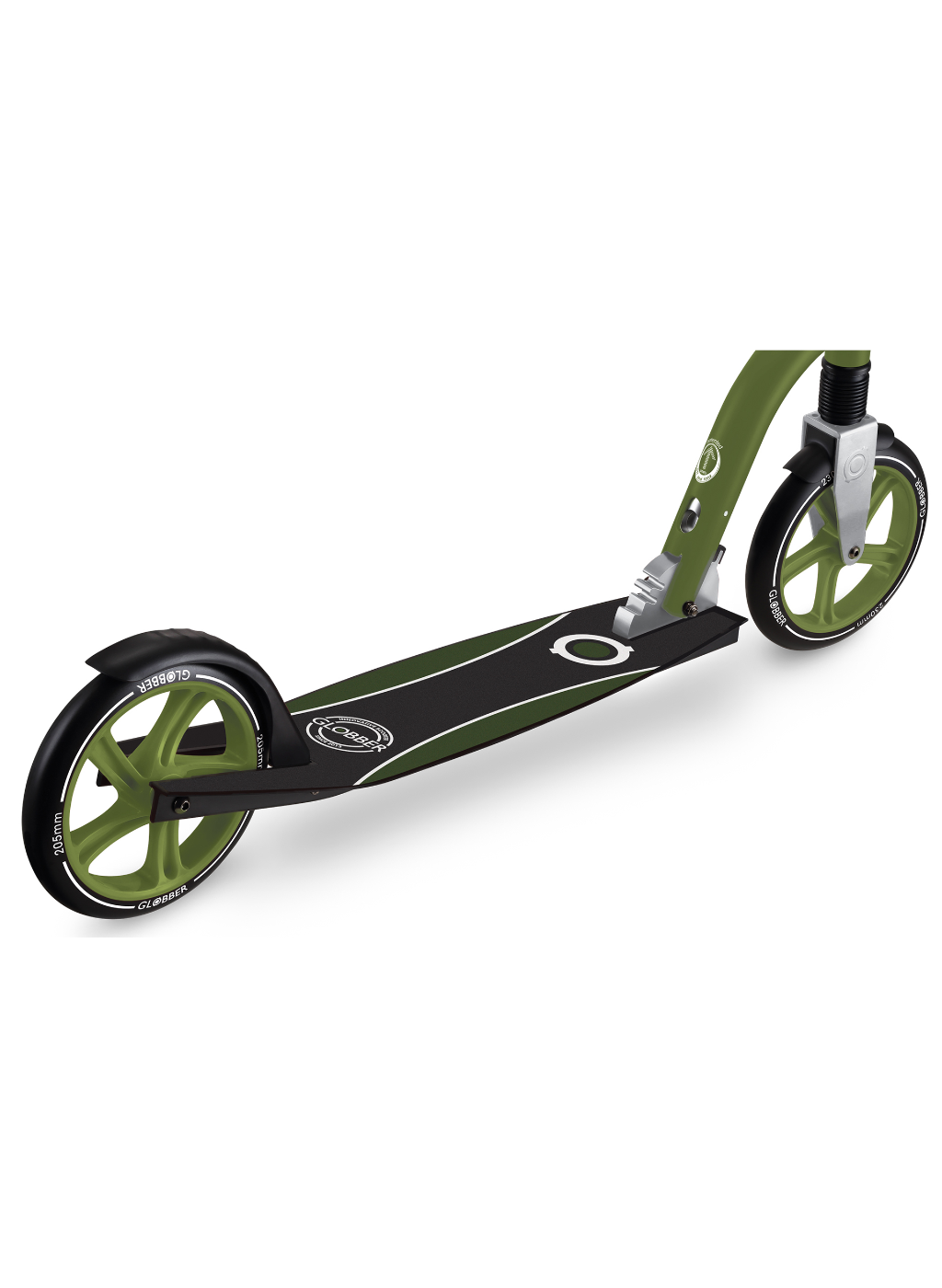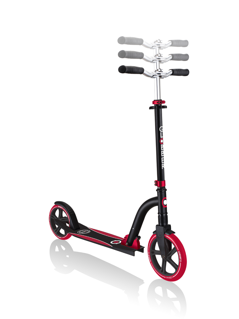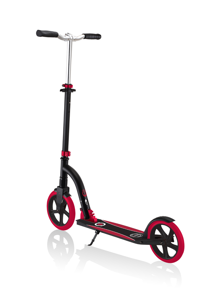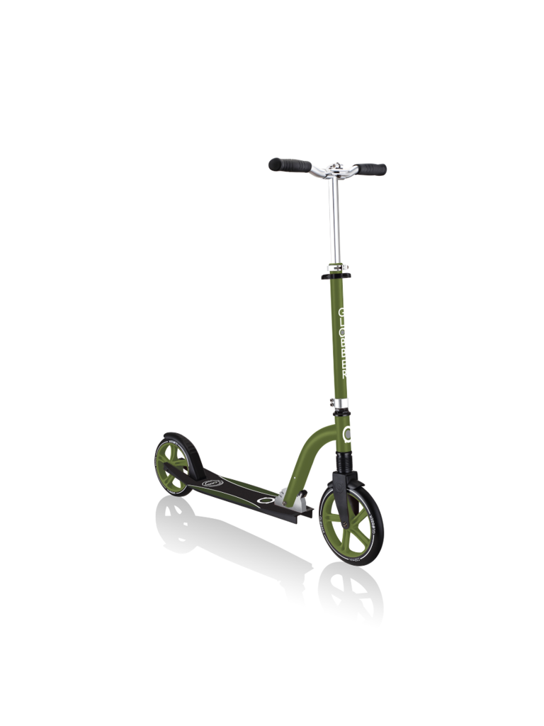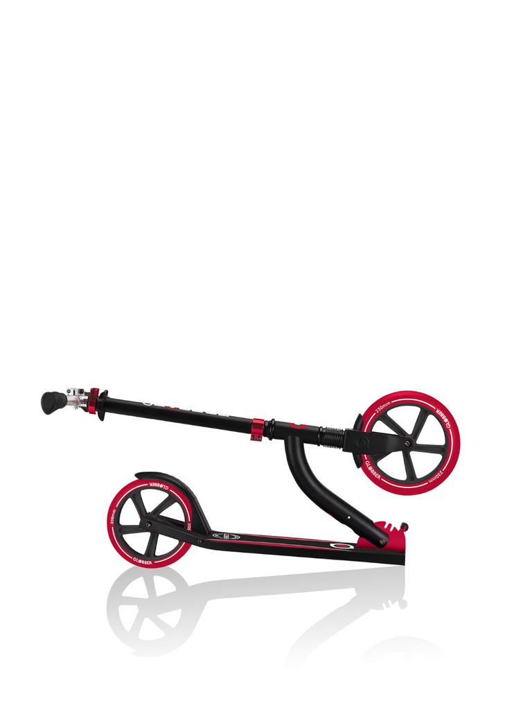 NL 230-205 DUO scooter with big wheels for teens is a foldable kick scooter equipped with Globber’s patented folding system, allowing you to put your 2-wheel scooter into folded mode by a simple lift of a button for compact & easy storage. You can also conveniently put your foldable scooter in self-standing mode when parking your big wheel kick scooter!