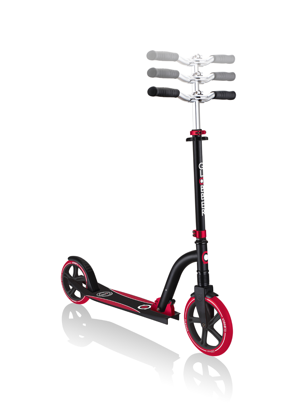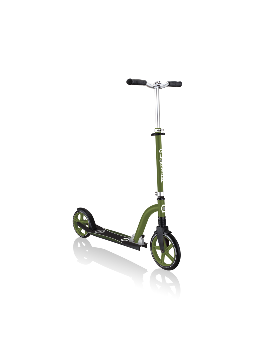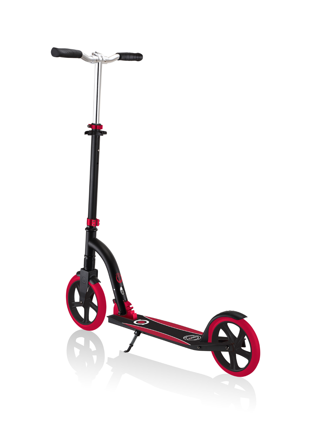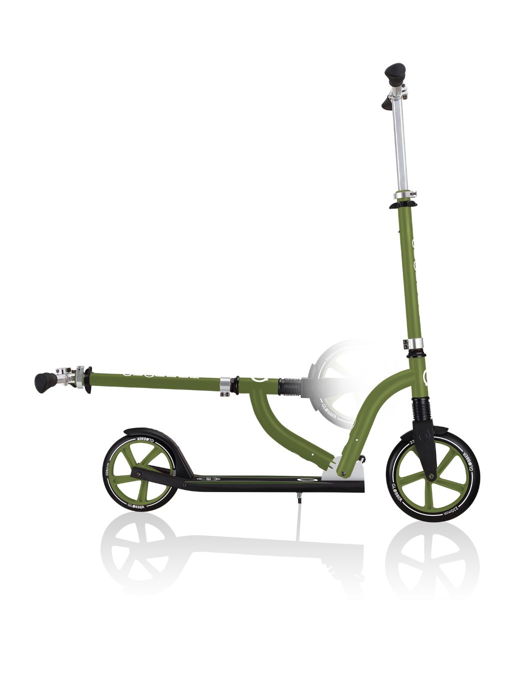 NL 230-205 DUO scooter with big wheels for teens is a foldable kick scooter equipped with Globber’s patented folding system, allowing you to put your 2-wheel scooter into folded mode by a simple lift of a button for compact & easy storage. You can also conveniently put your foldable scooter in self-standing mode when parking your big wheel kick scooter!