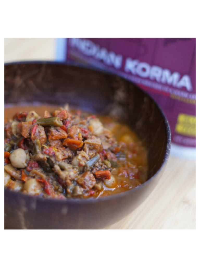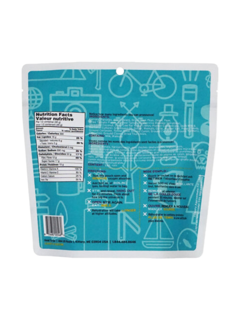 Carrot, Parsnip, Green Bean, Dehydrated Chick Peas (Chick Pea), Onion, Sweet Peas, Canned Tomato Paste (Vine Ripened Tomatoes), Unsulfured & Unsweetened Shredded Coconut, Yogurt Powder Blend (Cultured Whey, Nonfat Milk Solids & Yogurt Cultures), Grapeseed Oil, Tomato Flakes (Tomato), Ginger, Walnuts, Garlic, Kosher Salt, Poppy Seed, Coriander, Fennel, Cumin, Cardamom, Cinnamon, Turmeric, Clove, Dried Chiles
